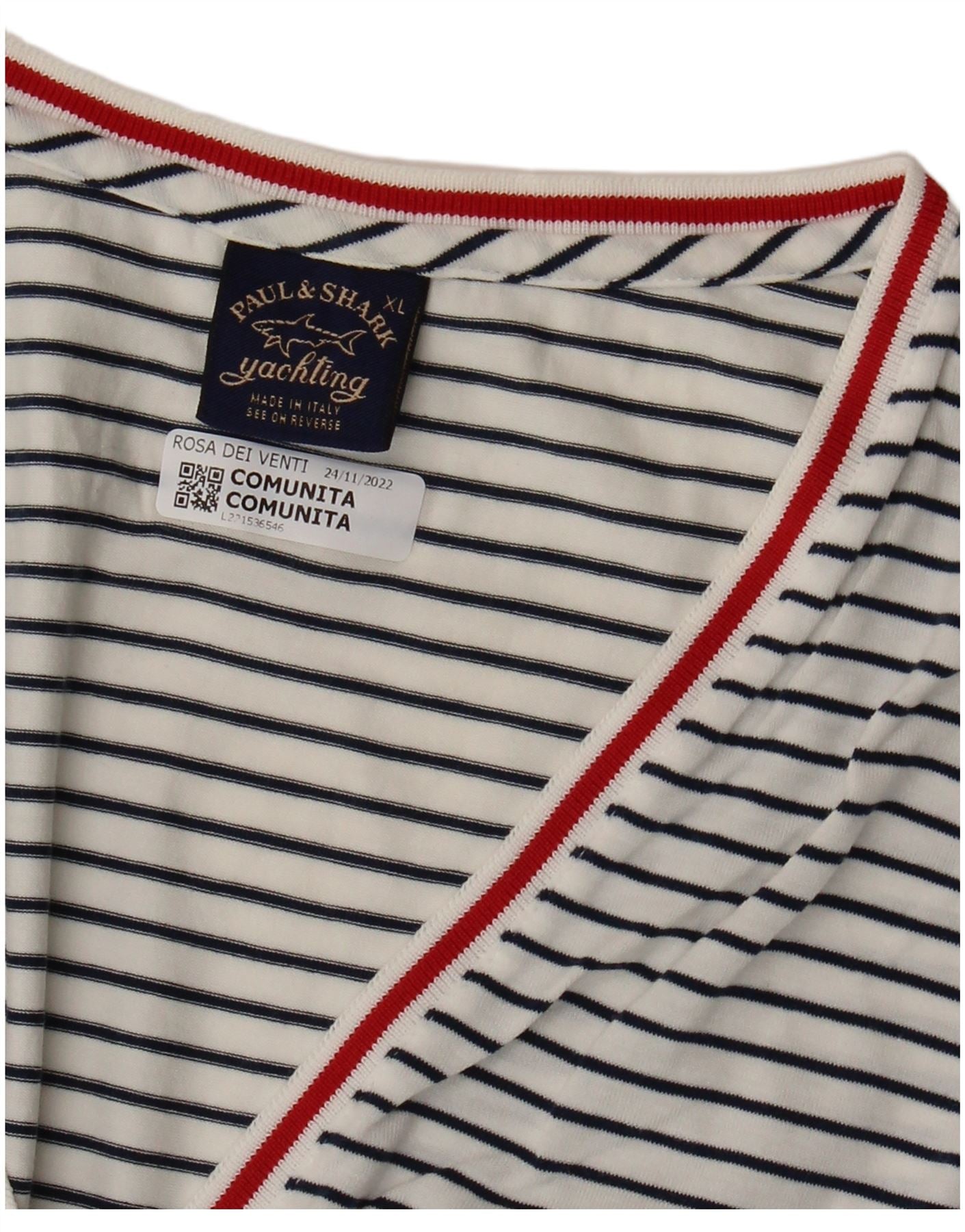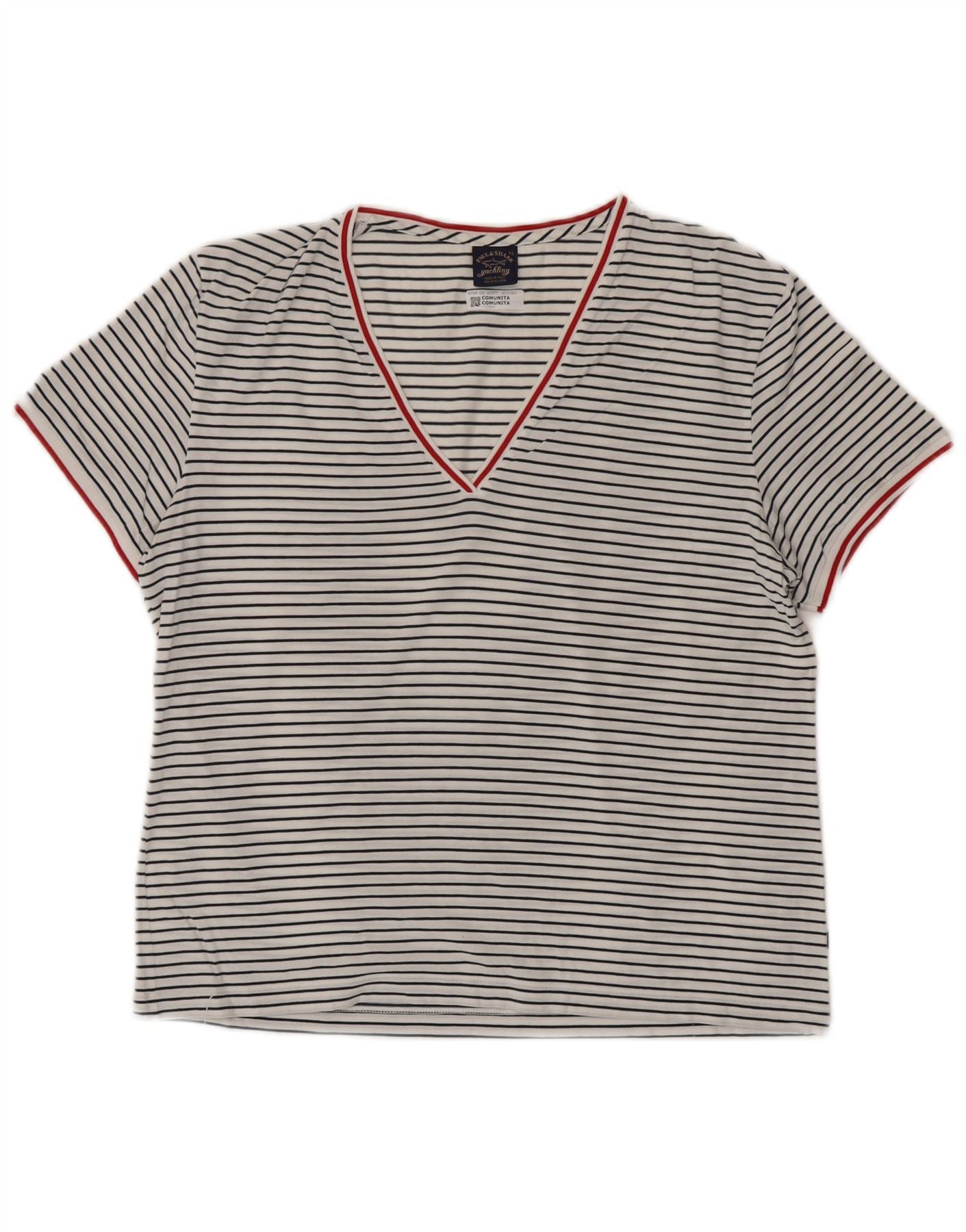 Camiseta feminina PAUL & SHARK UK 18 XL algodão listrado branco