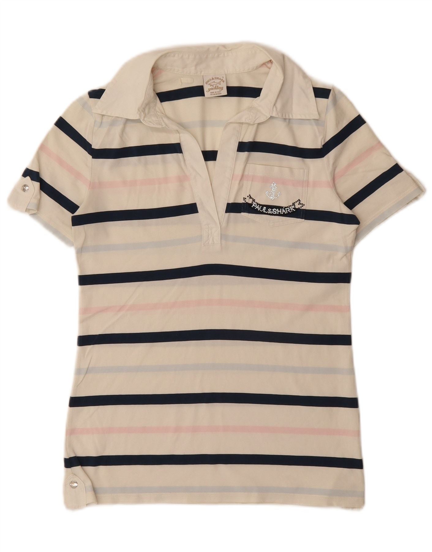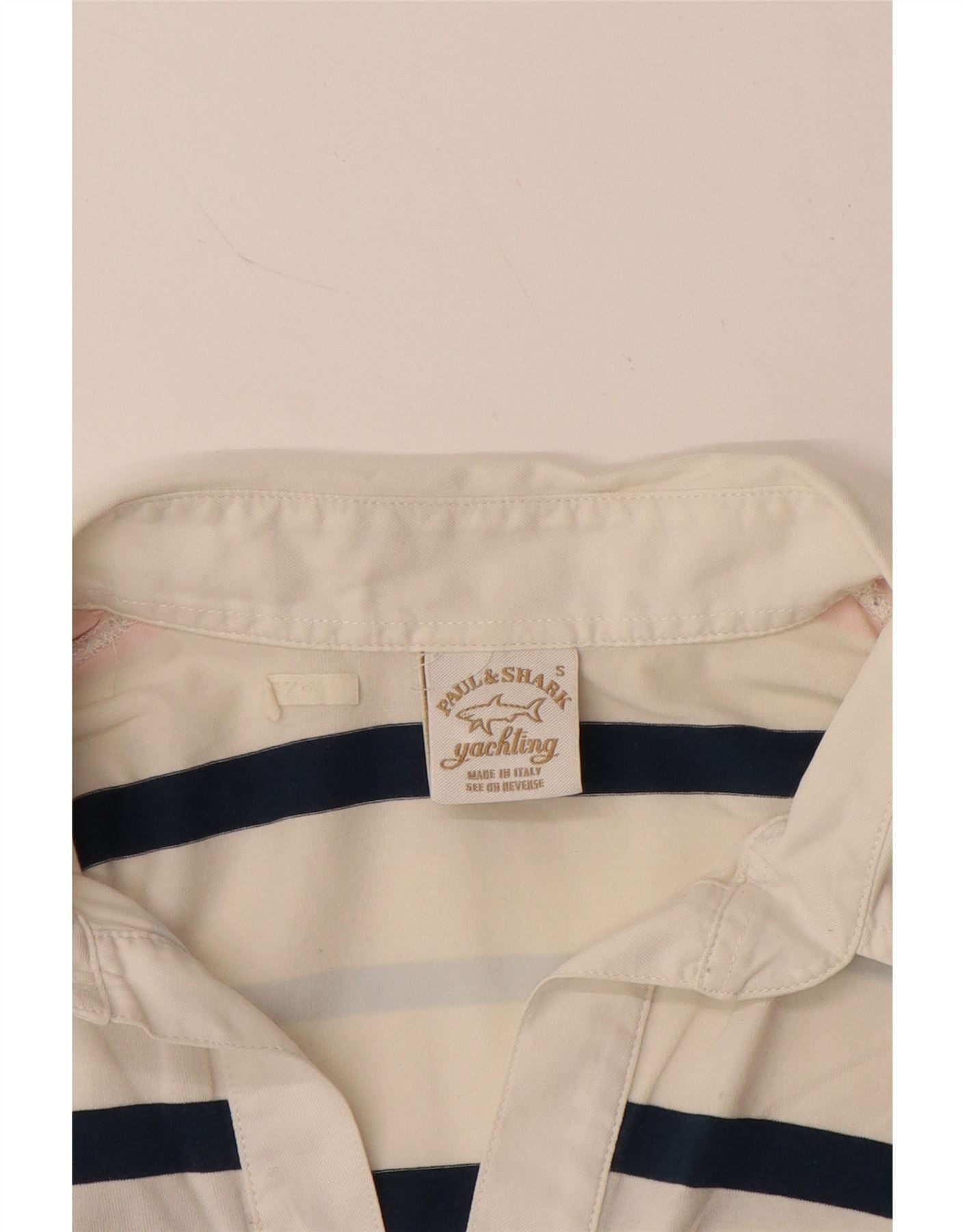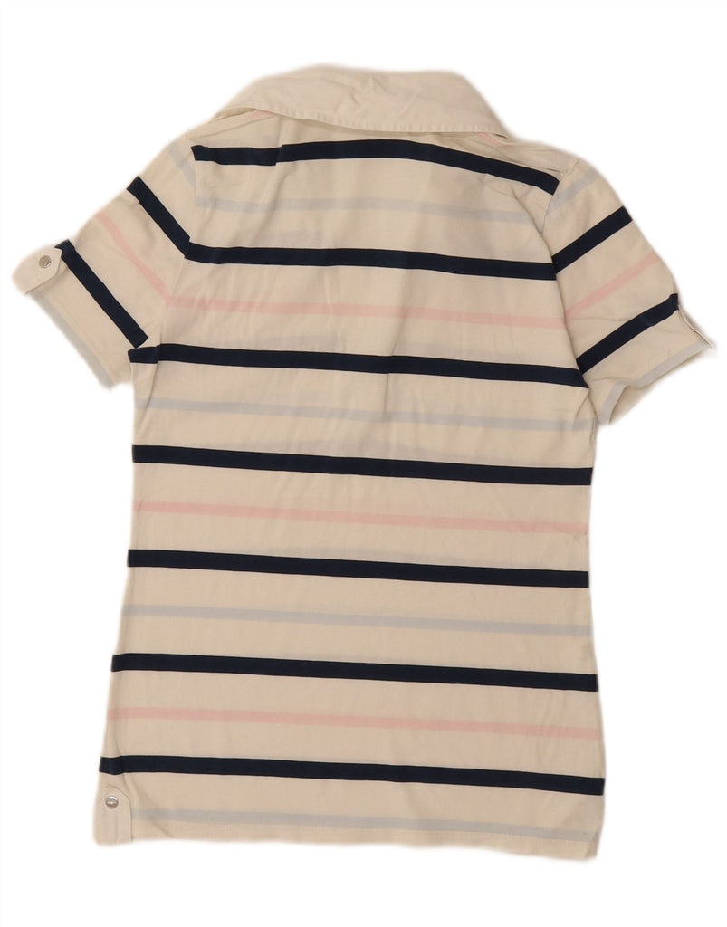 PAUL & SHARK Womens Yachting Polo Shirt UK 8 Small White Striped Cotton