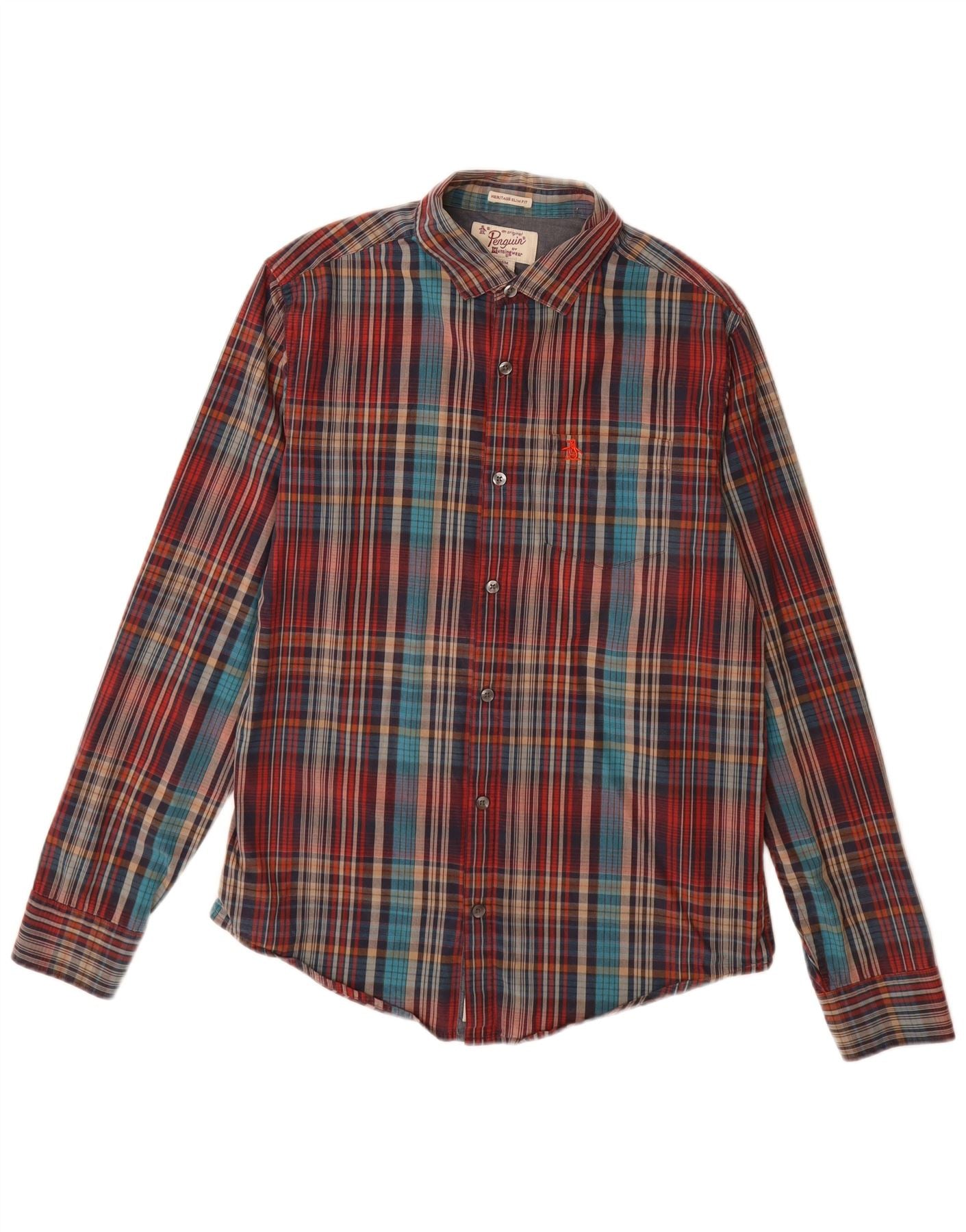 PENGUIN Mens Heritage Slim Fit Flannel Shirt Medium Multicoloured Check