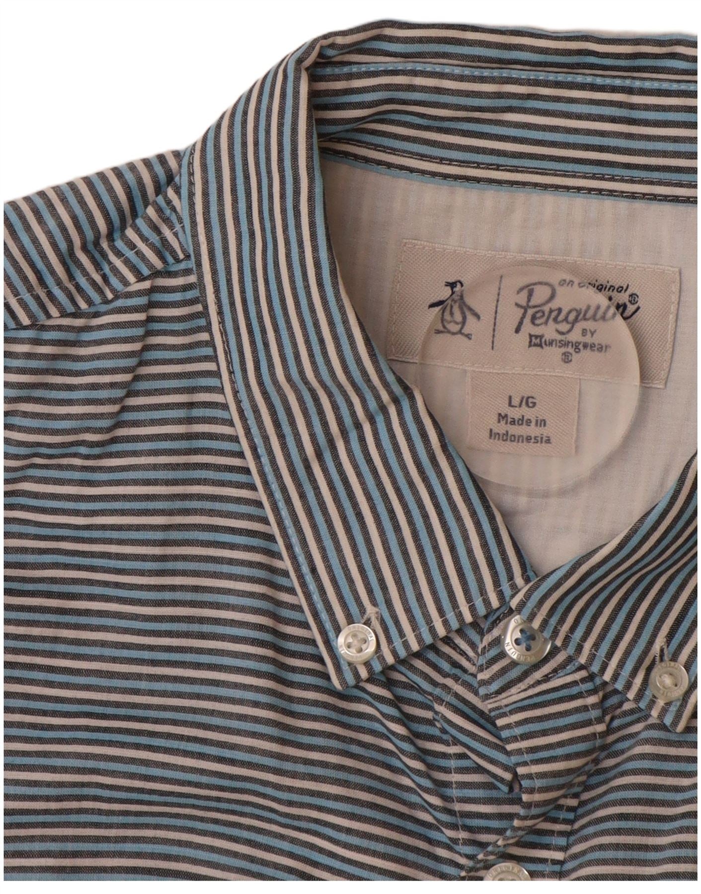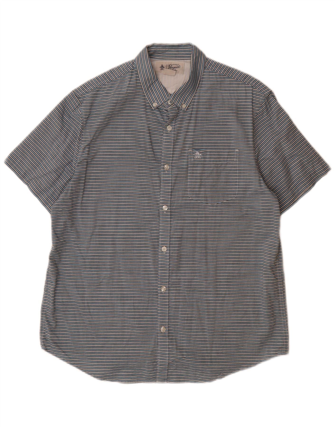 Camisa masculina de manga curta PENGUIN grande algodão listrado azul