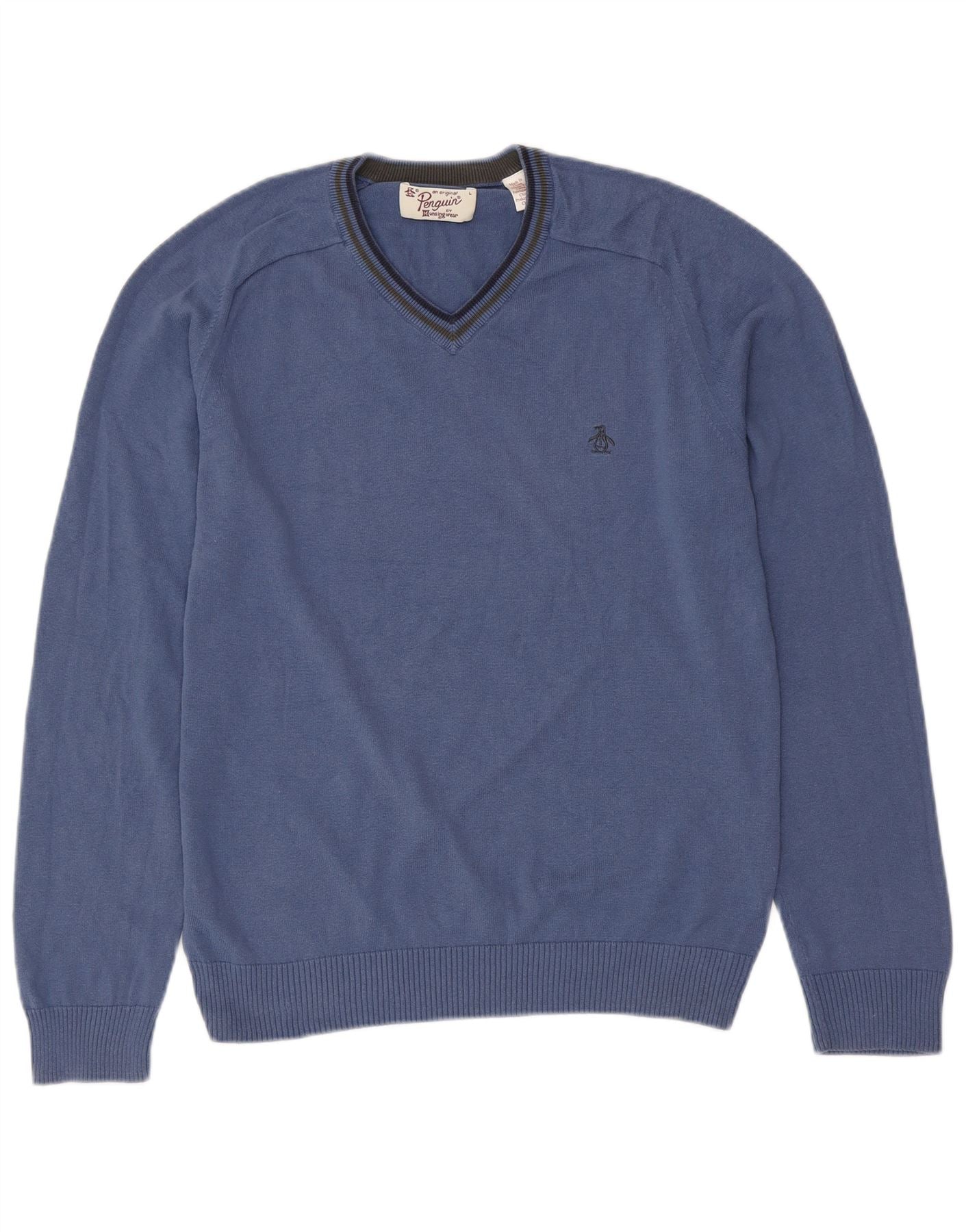 Suéter masculino PENGUIN com decote em V grande algodão azul