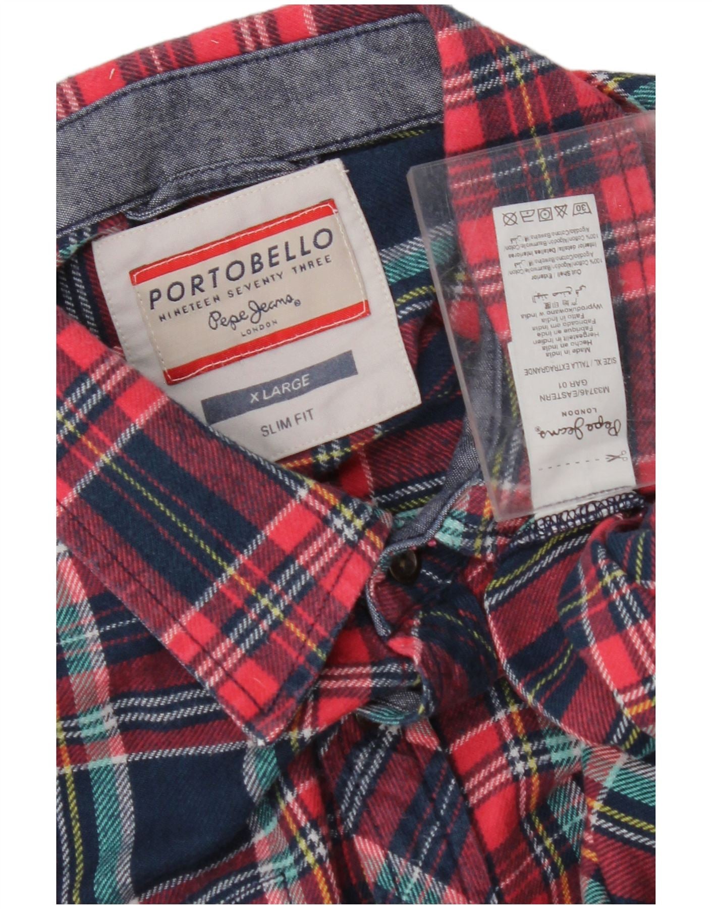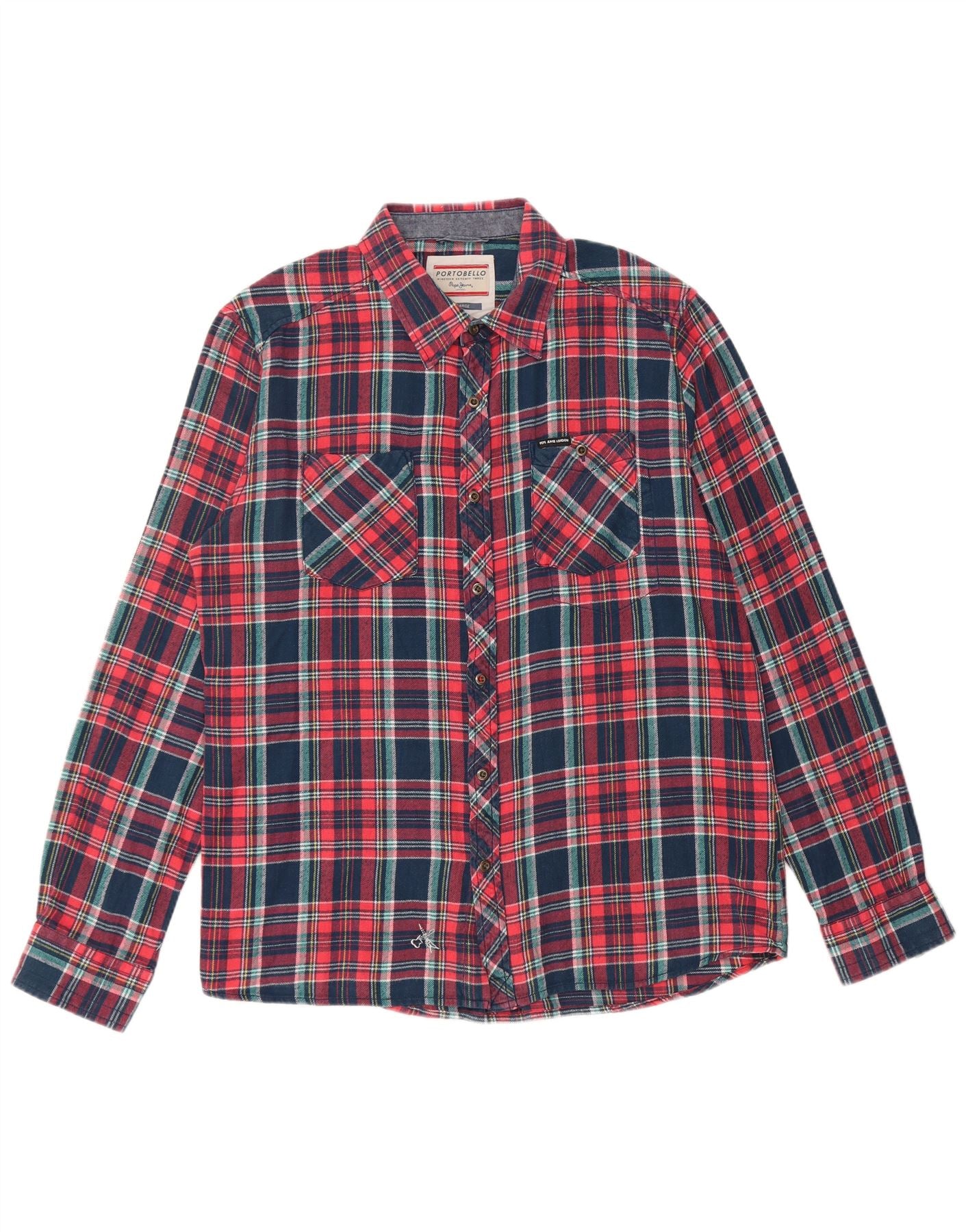 PEPE JEANS Mens Slim Fit Flannel Shirt XL Multicoloured Check Cotton