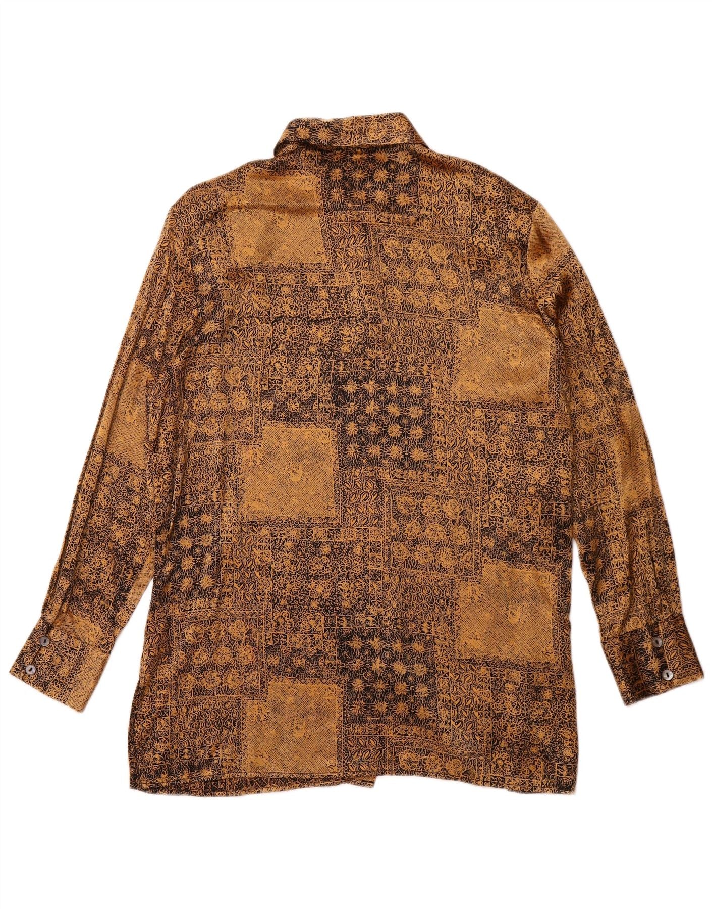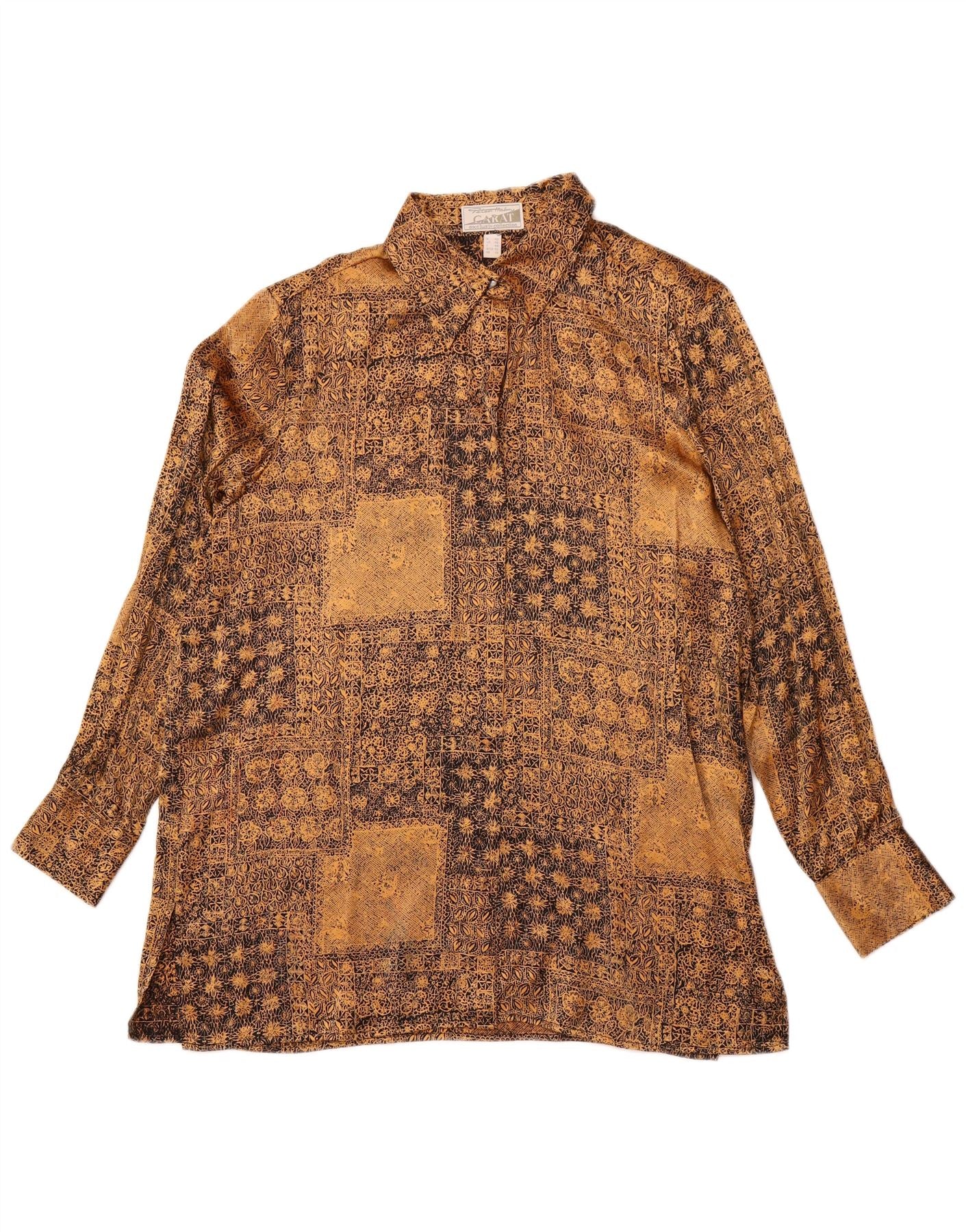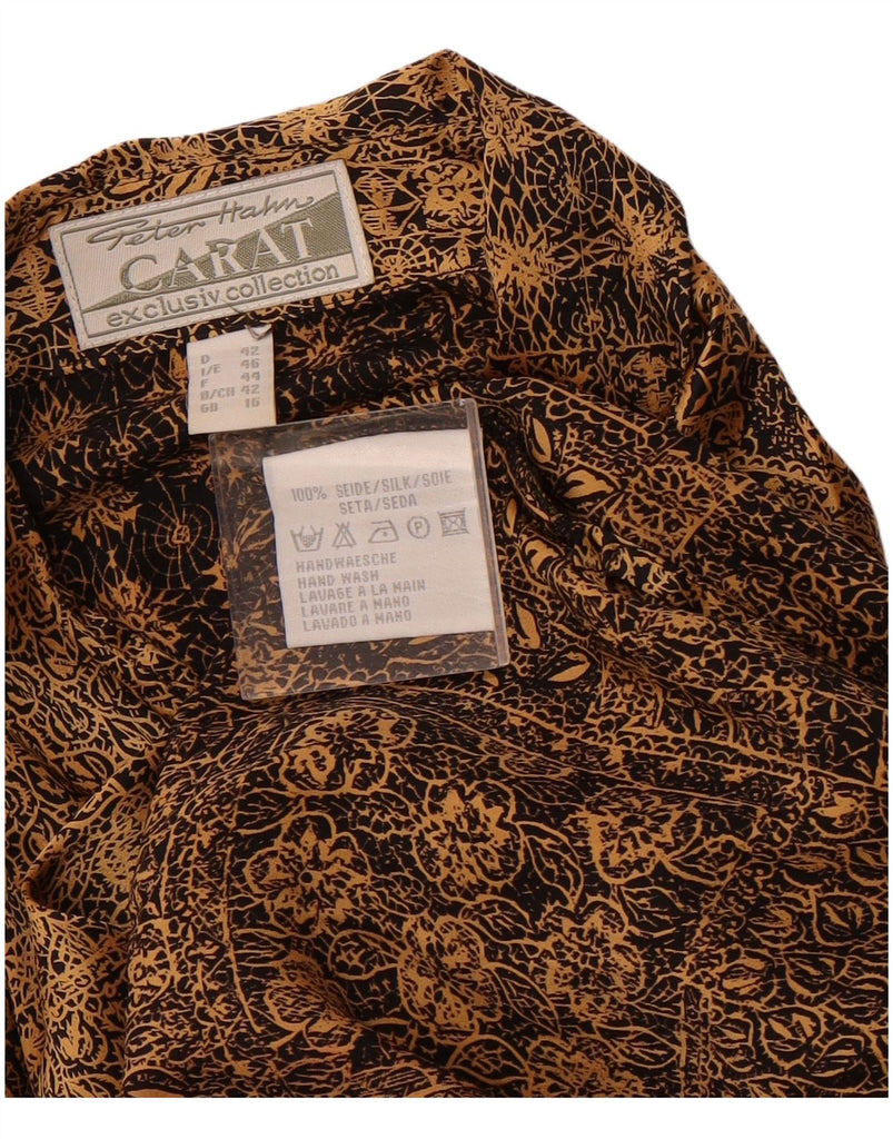 PETER HAHN Camisa Longline Feminina Reino Unido 16 Grande Seda Floral Dourada