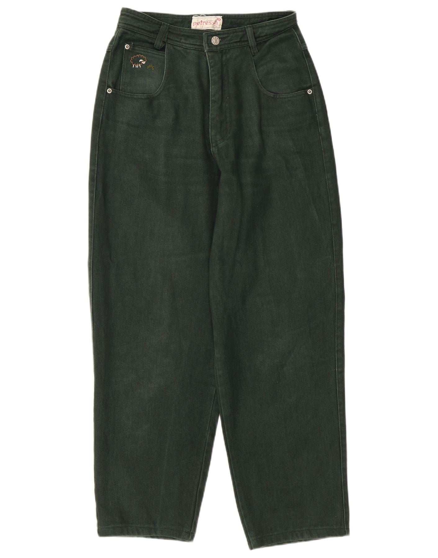PETRESSA Jeans feminino cintura alta cônico UE 36 pequeno W26 L26 algodão verde