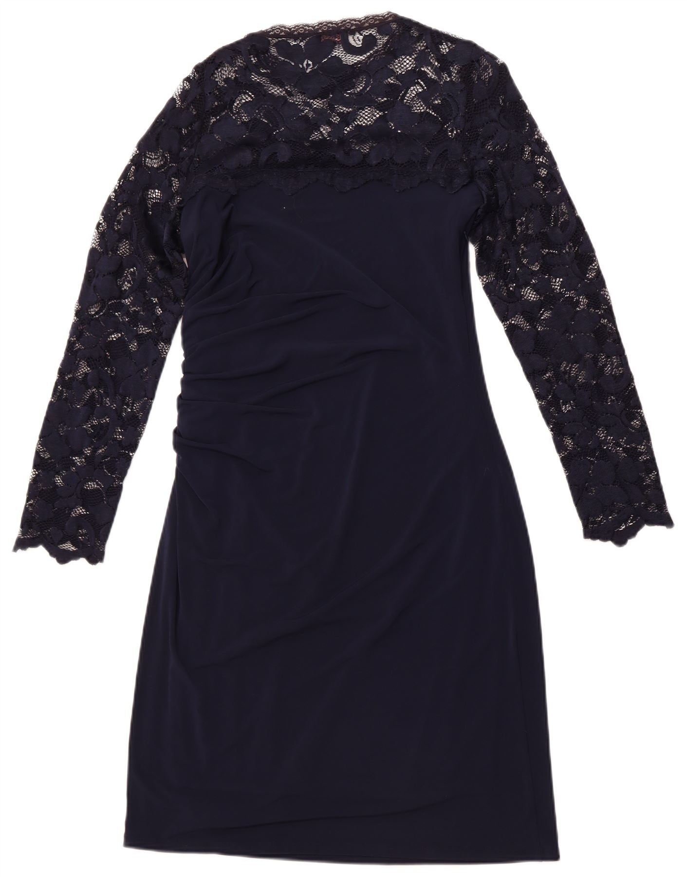 Vestido maxi feminino de manga comprida FASE EIGHT UK 12 médio azul marinho floral