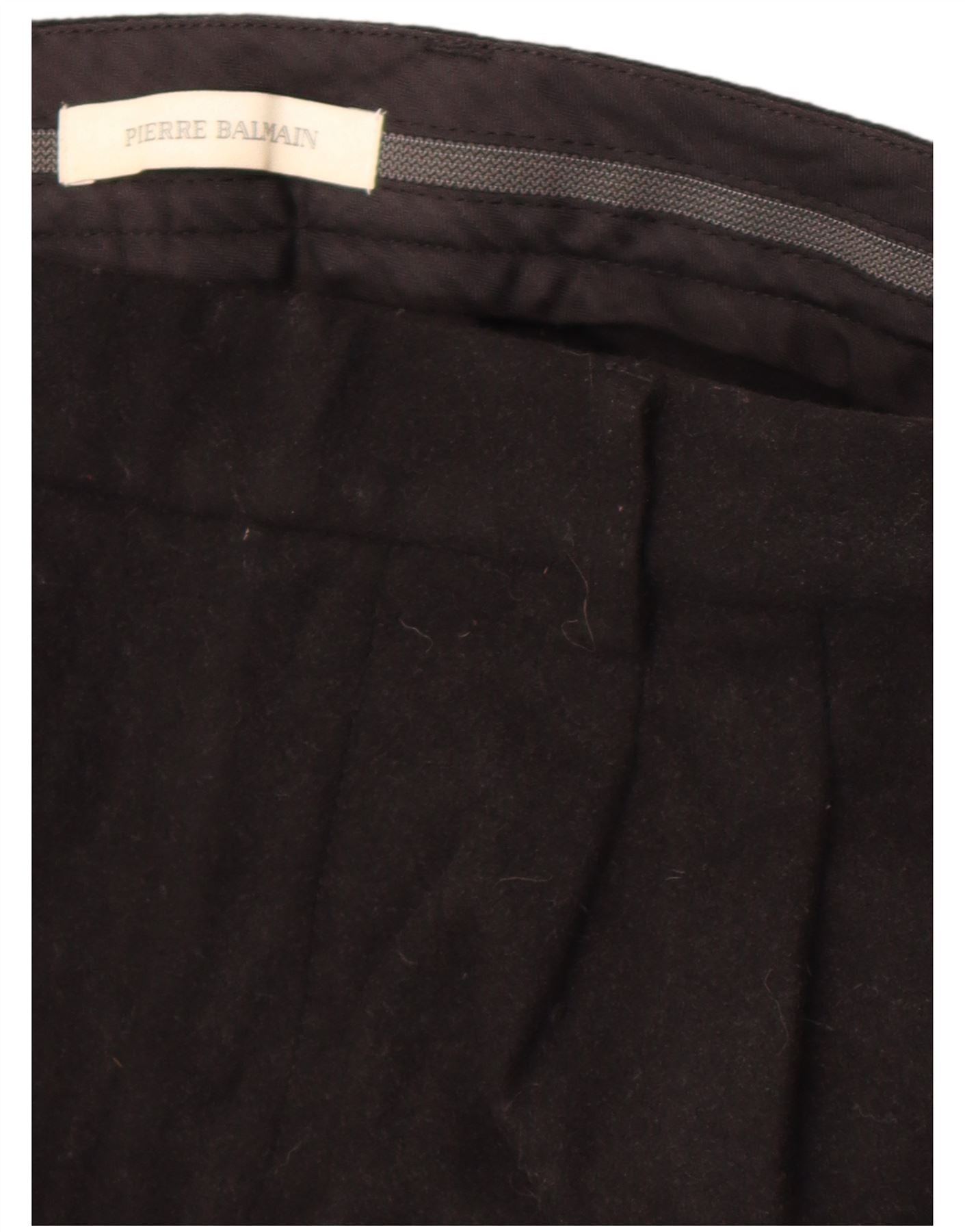 - Descrição da IA: Estas calças masculinas Pierre Balmain são confeccionadas em tecido preto, oferecendo uma textura refinada. Eles apresentam um ajuste regular para uso confortável. O corte clássico inclui fecho de botão e silhueta de perna reta. O design é clean e minimalista, com foco na alfaiataria atemporal. Estas calças fornecem uma base sofisticada para qualquer conjunto formal ou casual elegante.