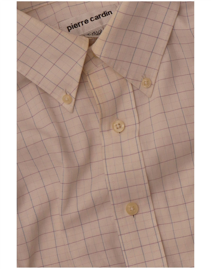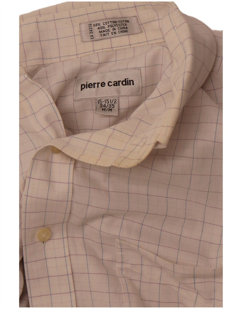 PIERRE CARDIN Mens Shirt Size 15 1/2 Medium White Check Cotton