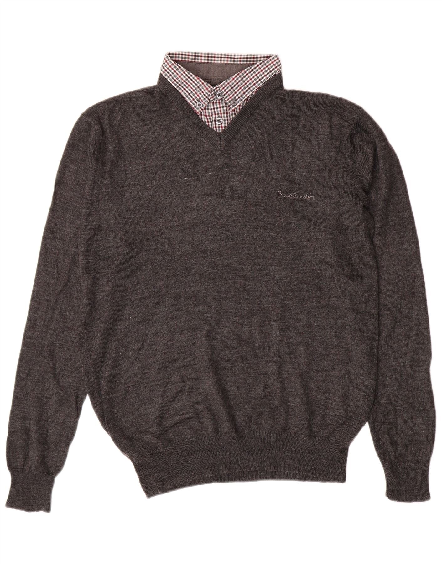 Suéter masculino PIERRE CARDIN com decote em V, clássico cinza acrílico médio
