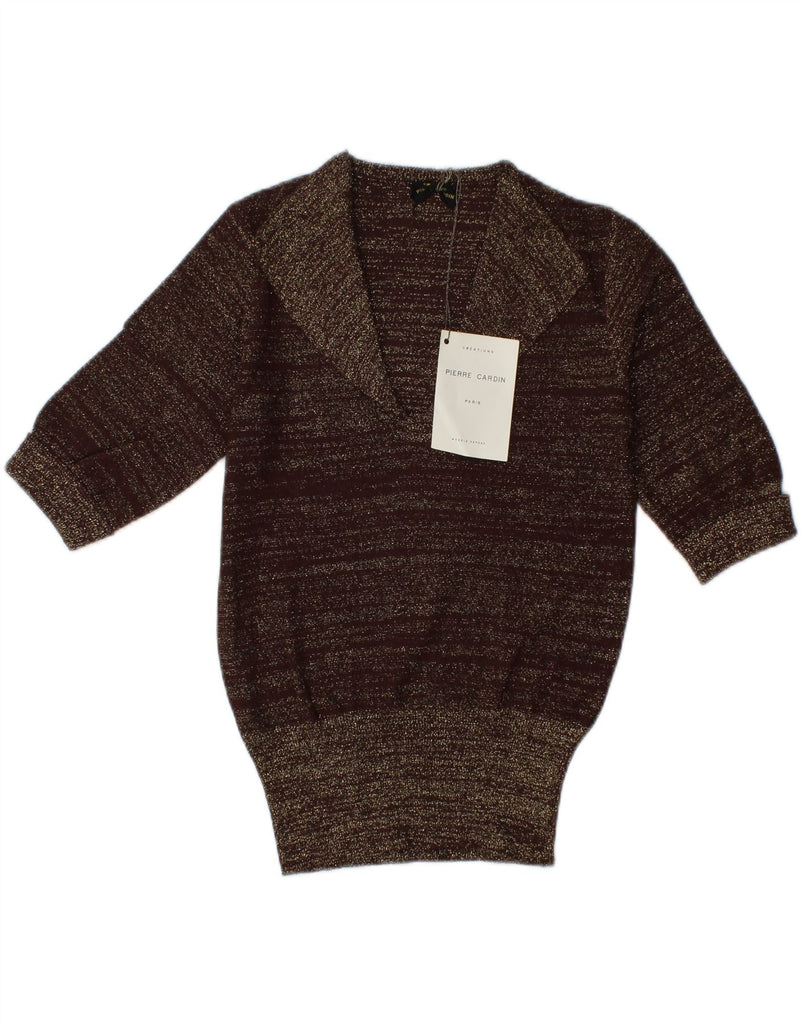 PIERRE CARDIN Womens Polo Neck Jumper Sweater IT 48 XL Brown Striped