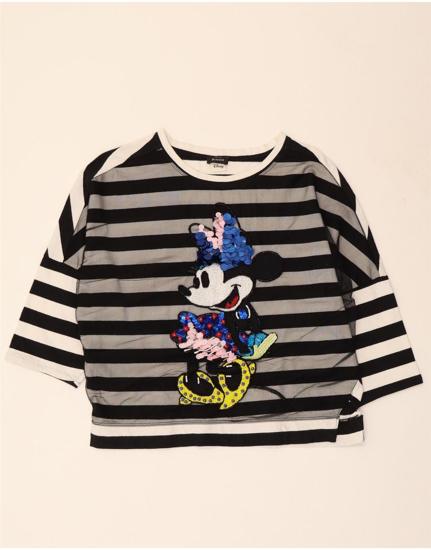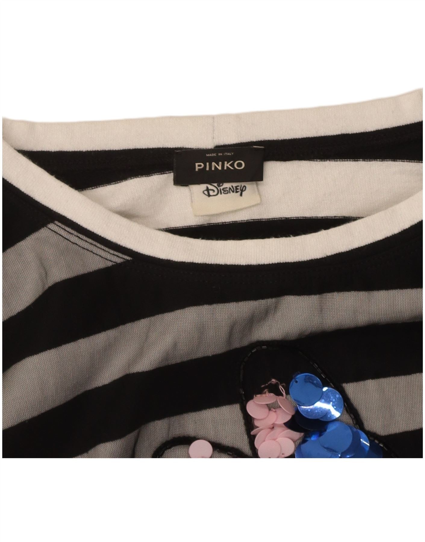 PINKO Top feminino Disney Crop manga 3/4 Reino Unido 14 grande listrado branco náutico