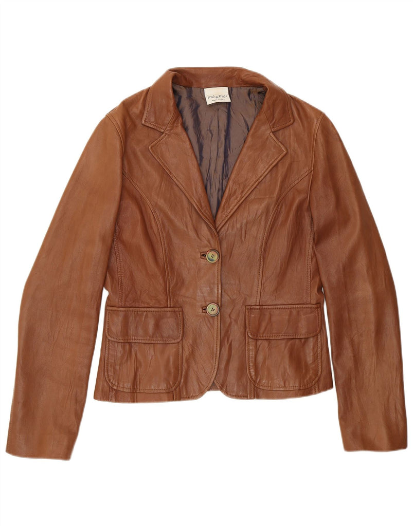 PIU & PIU Womens Leather 2 Button Blazer Jacket IT 46 Large Brown Leather