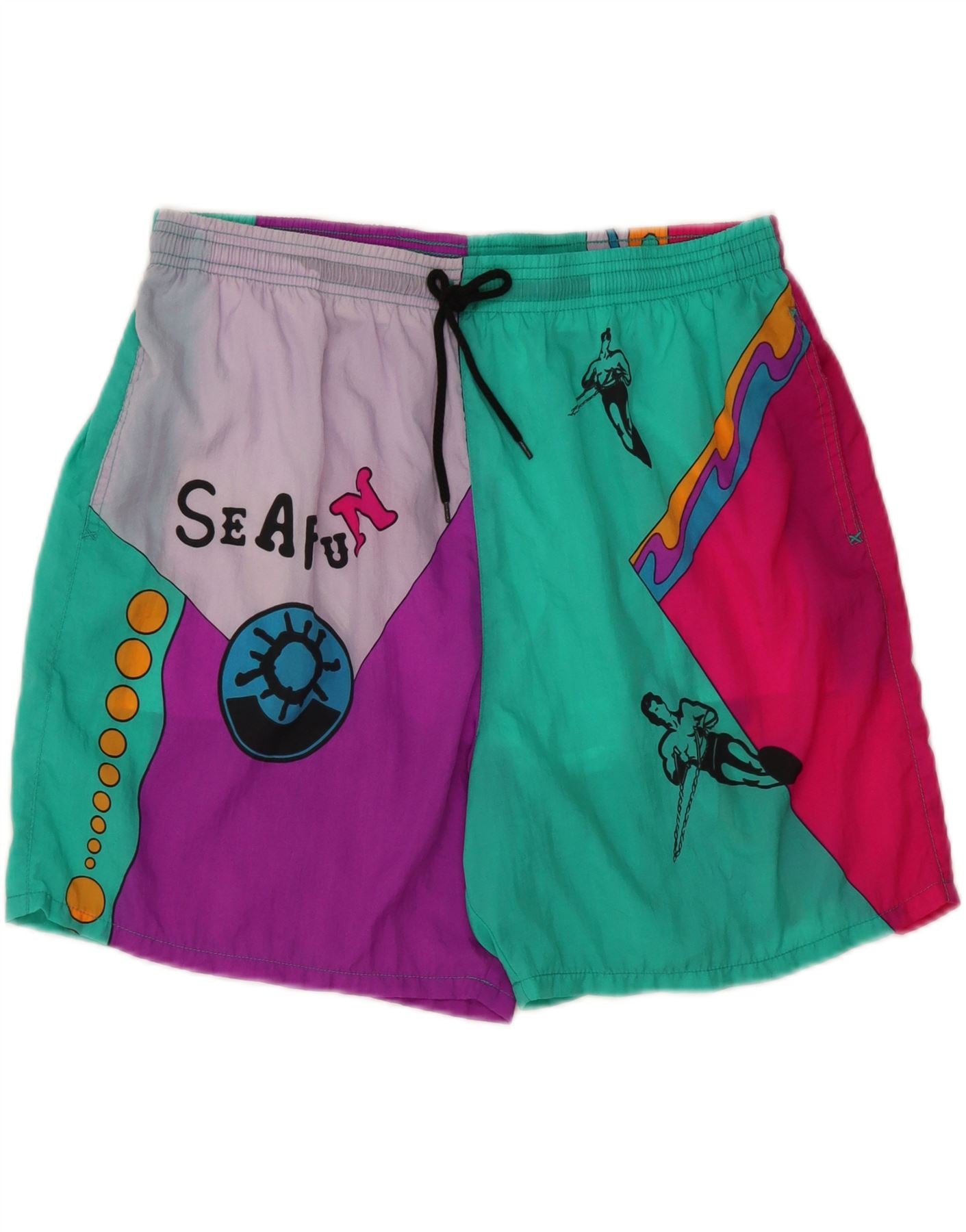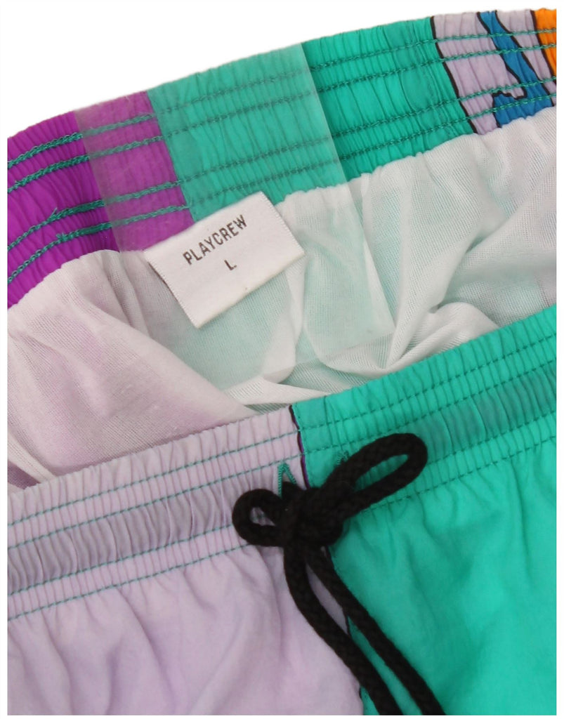 Shorts de natação masculino gráfico PLAYCREW grande bloco colorido multicolorido