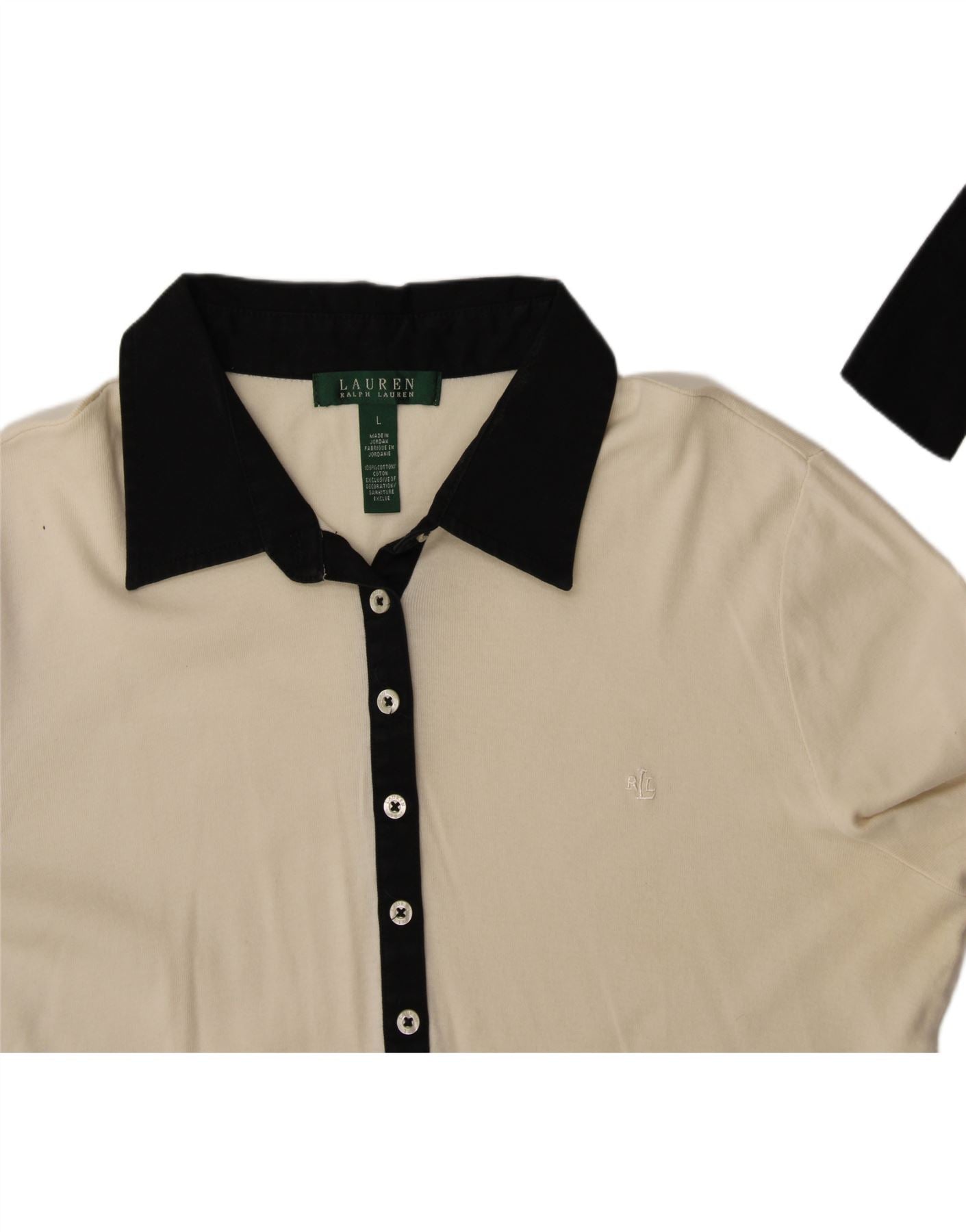 Polo feminino de manga 3/4 RALPH LAUREN Reino Unido 16 grande algodão branco