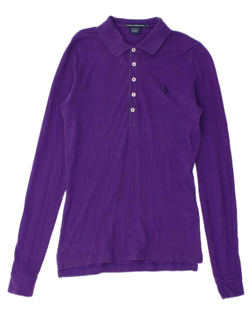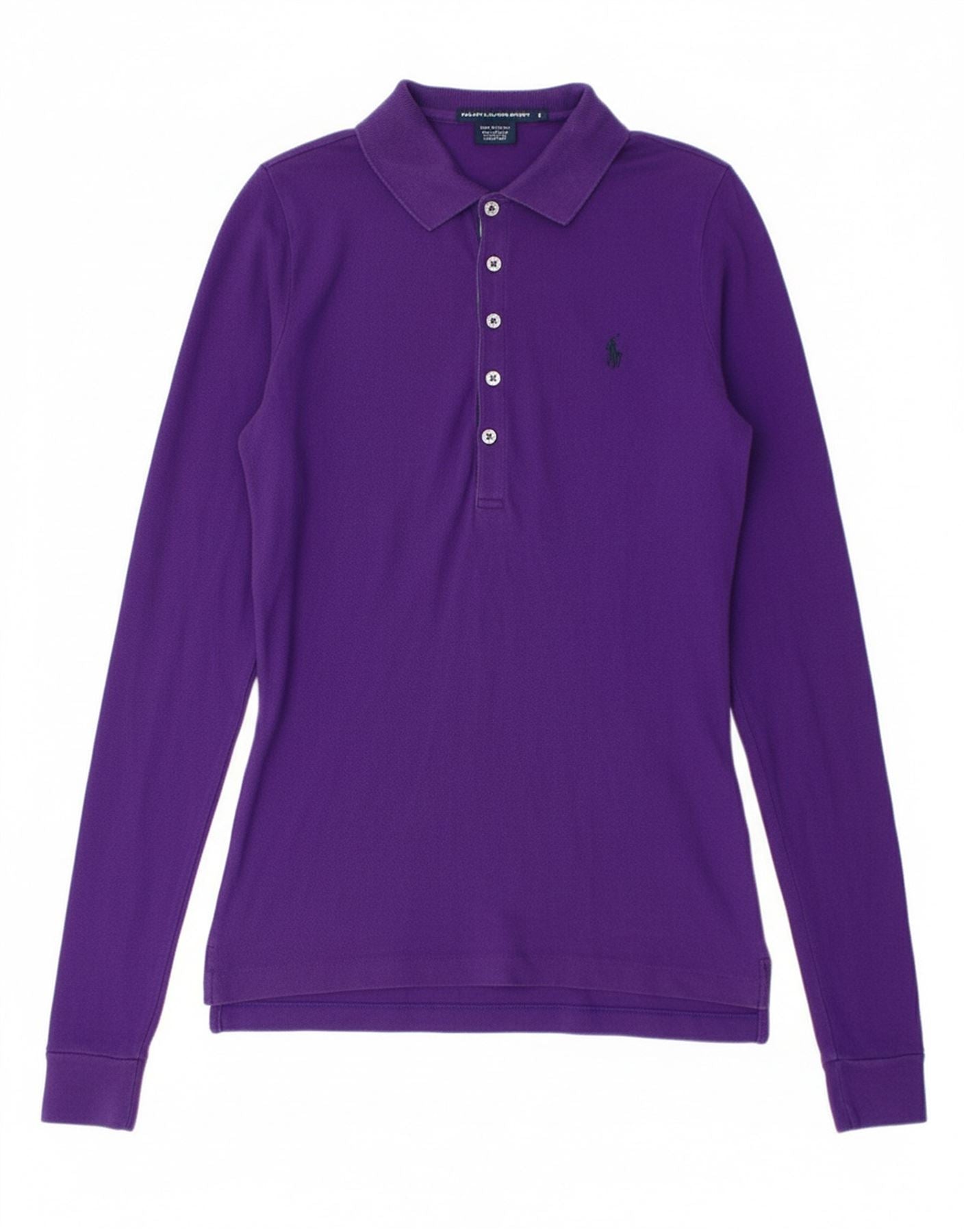 Polo feminino de manga comprida RALPH LAUREN Reino Unido 10 algodão roxo pequeno