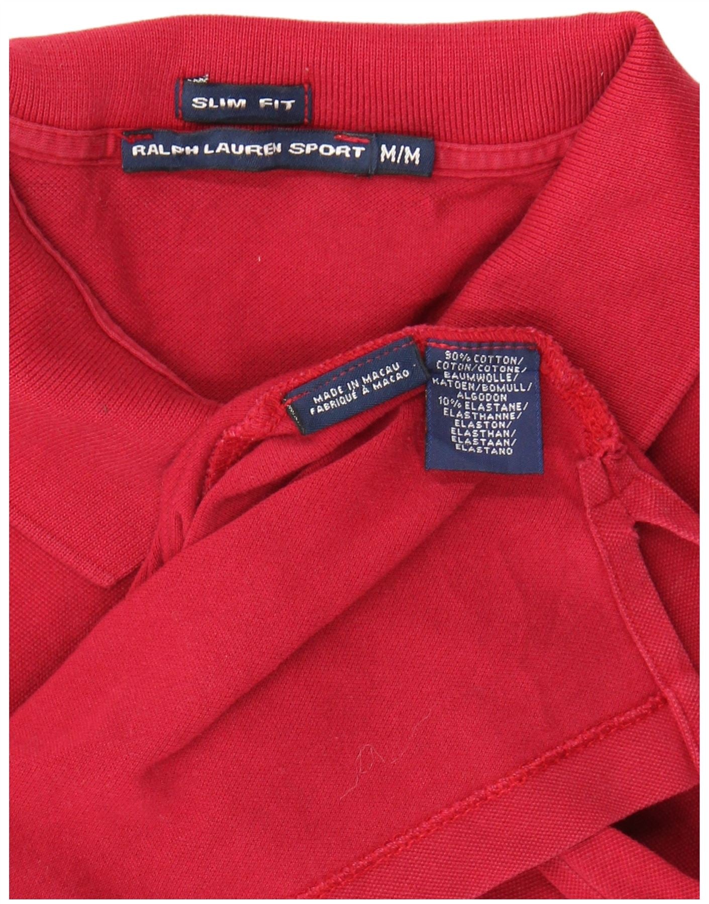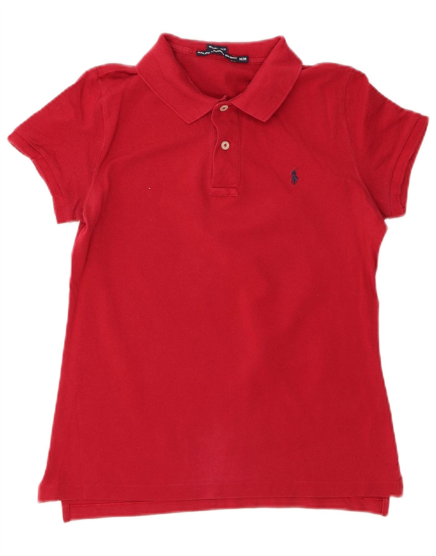 Polo feminino RALPH LAUREN slim fit Reino Unido 12 algodão vermelho médio