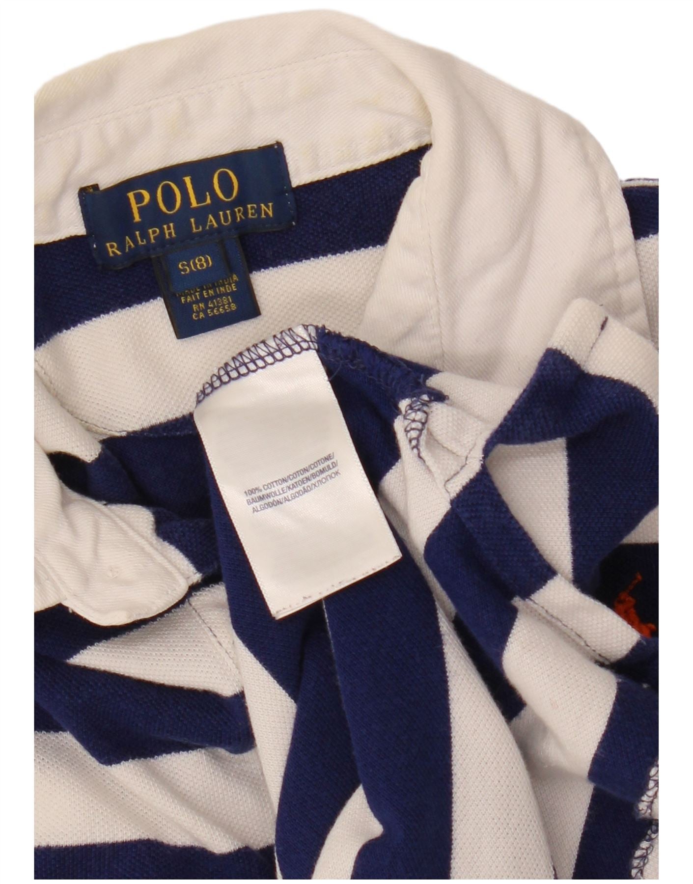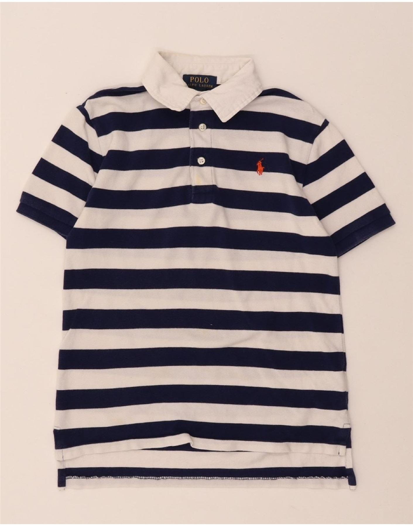 POLO RALPH LAUREN Boys Polo Shirt 7-8 Years Small Navy Blue Striped Cotton