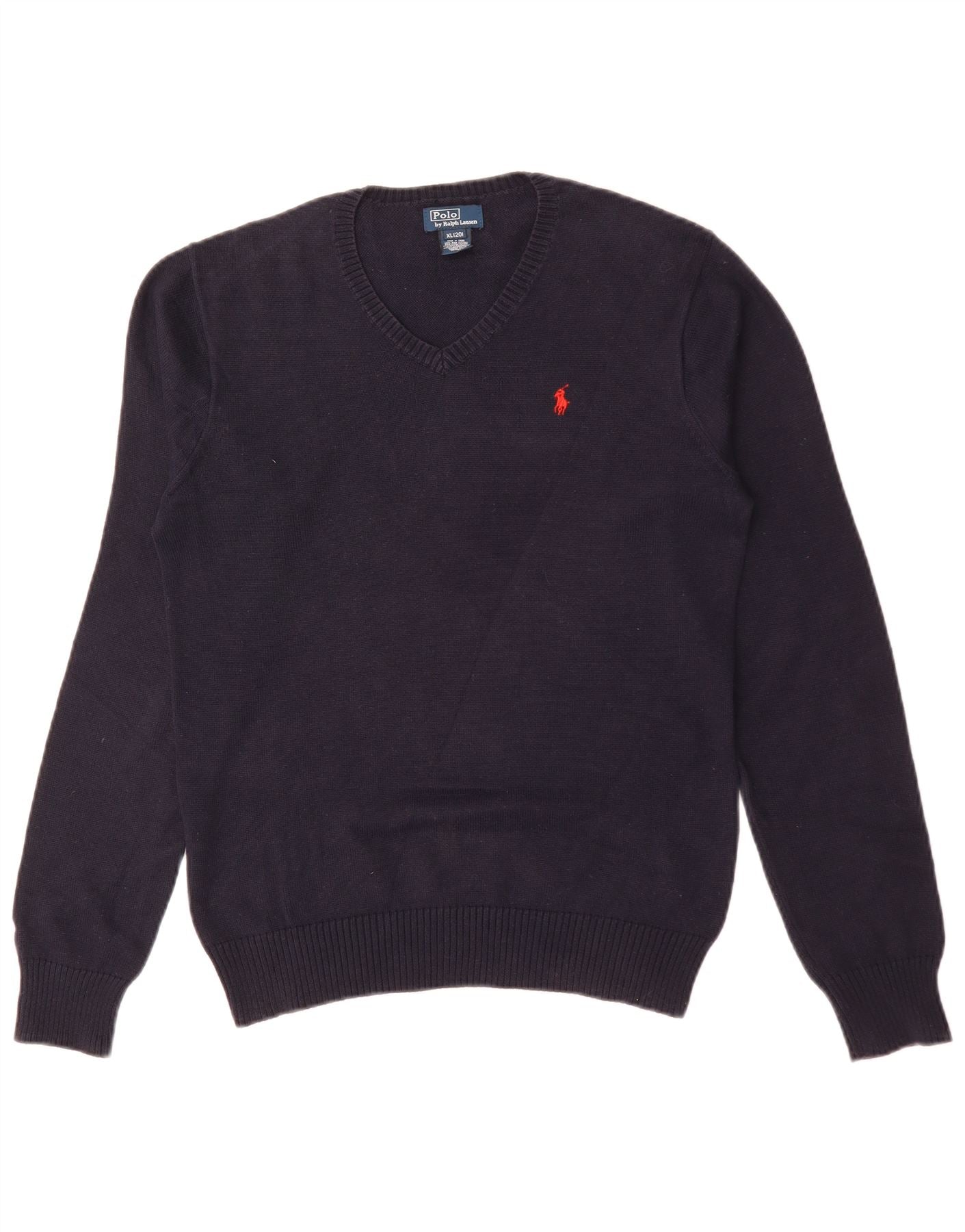 POLO RALPH LAUREN Boys V-Neck Jumper Sweater 13-14 Years XL Navy Blue