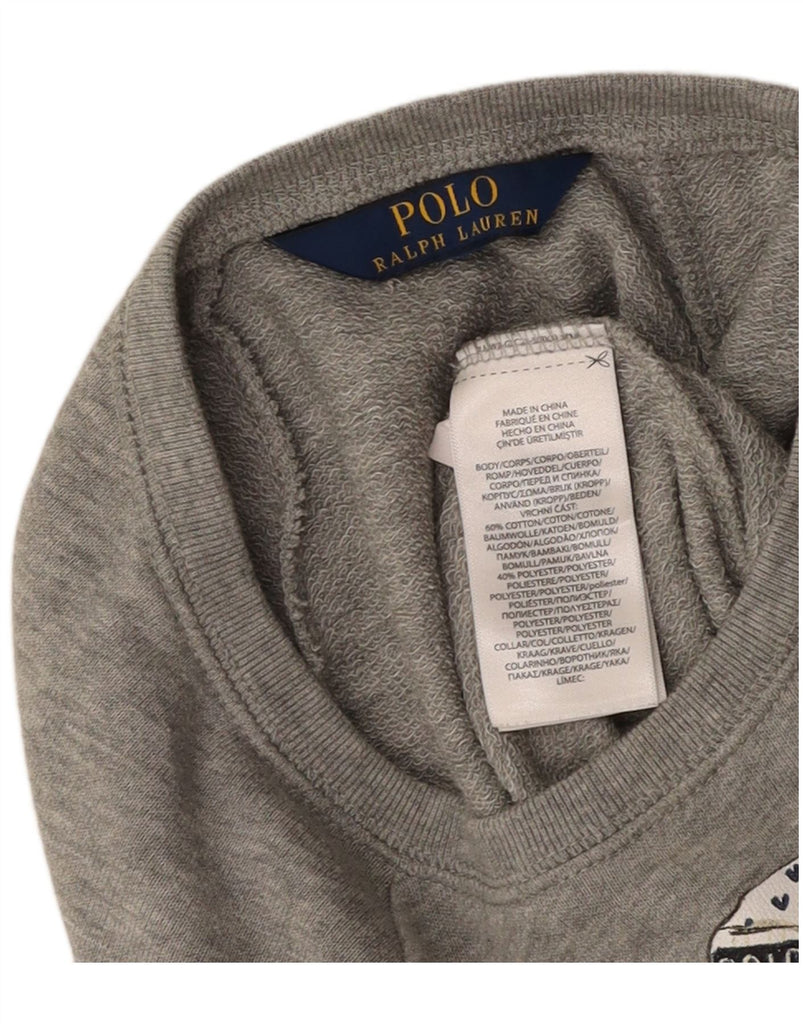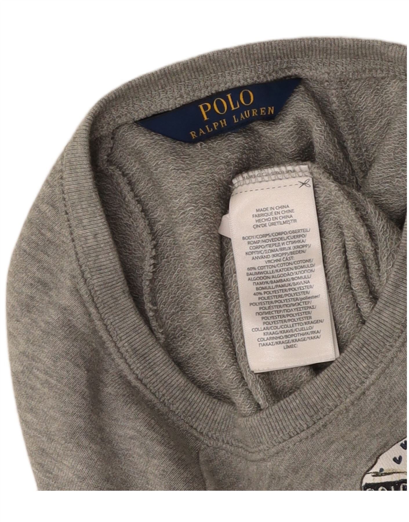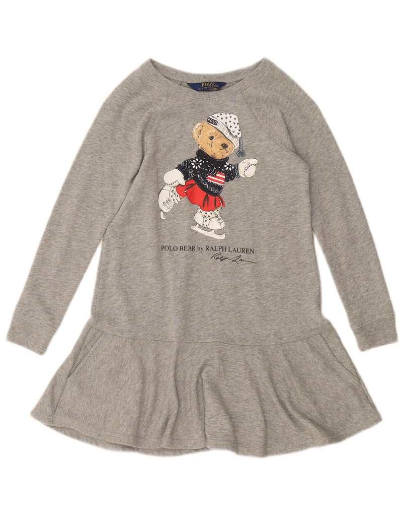 POLO RALPH LAUREN Girls Graphic Jumper Dress 8-9 Years Grey Flecked
