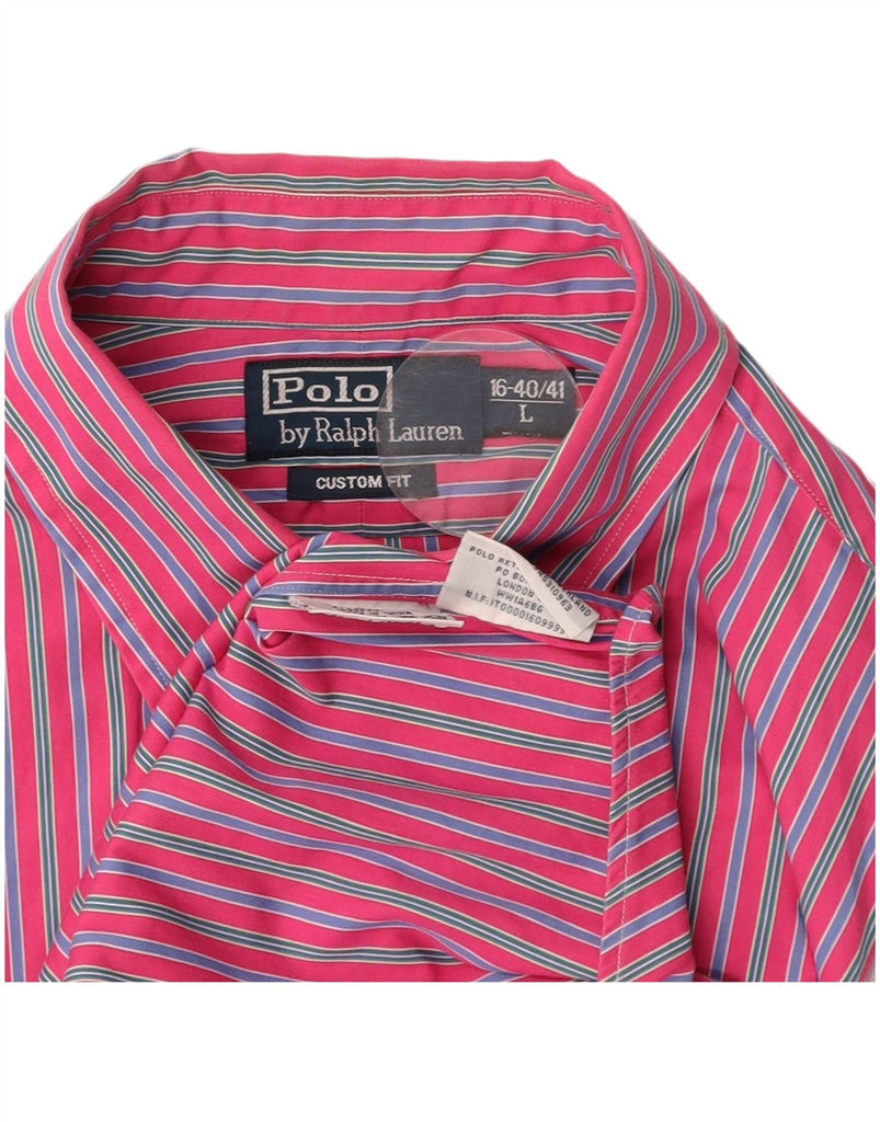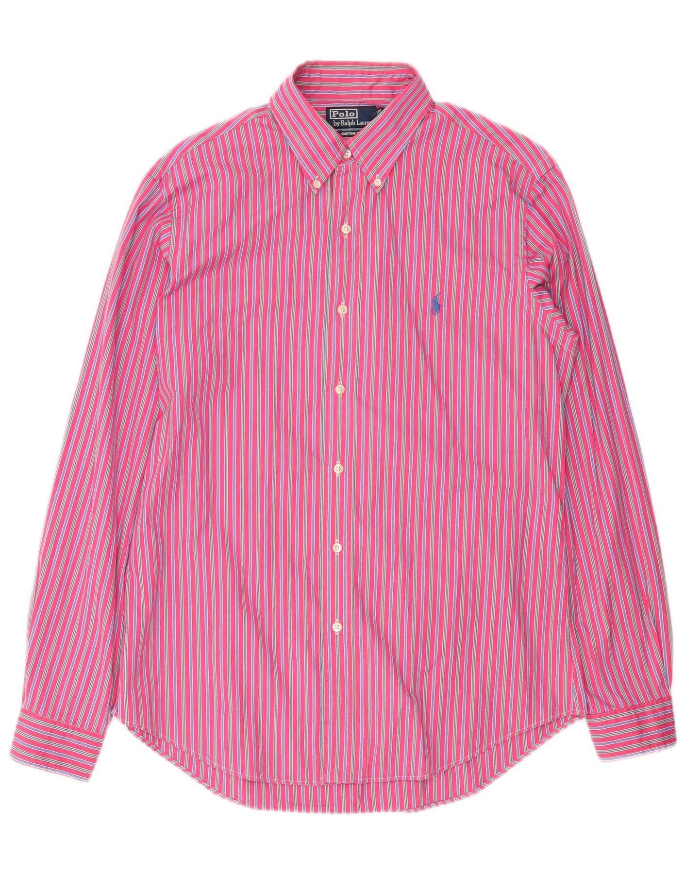 Camisa masculina POLO RALPH LAUREN com ajuste personalizado tamanho 16 40/41 listrado rosa grande