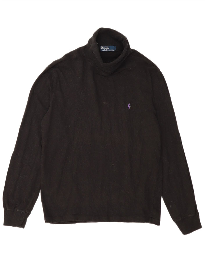 POLO RALPH LAUREN Mens Roll Neck Top Long Sleeve Medium Black Cotton