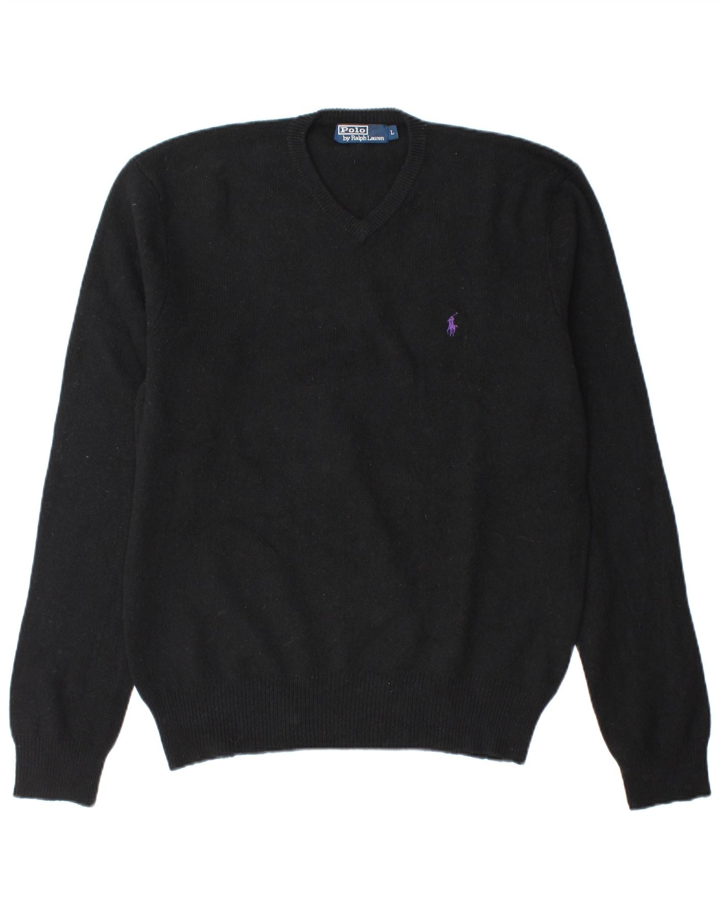 Polo Ralph Lauren Suéter masculino com decote em V grande lã de carneiro preta