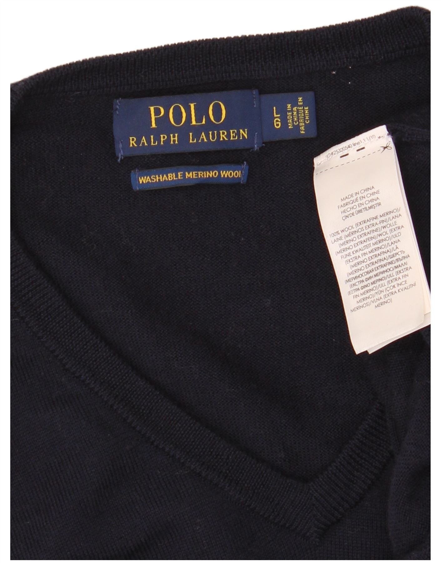 Polo Ralph Lauren Suéter masculino com decote em V grande lã Merino azul marinho