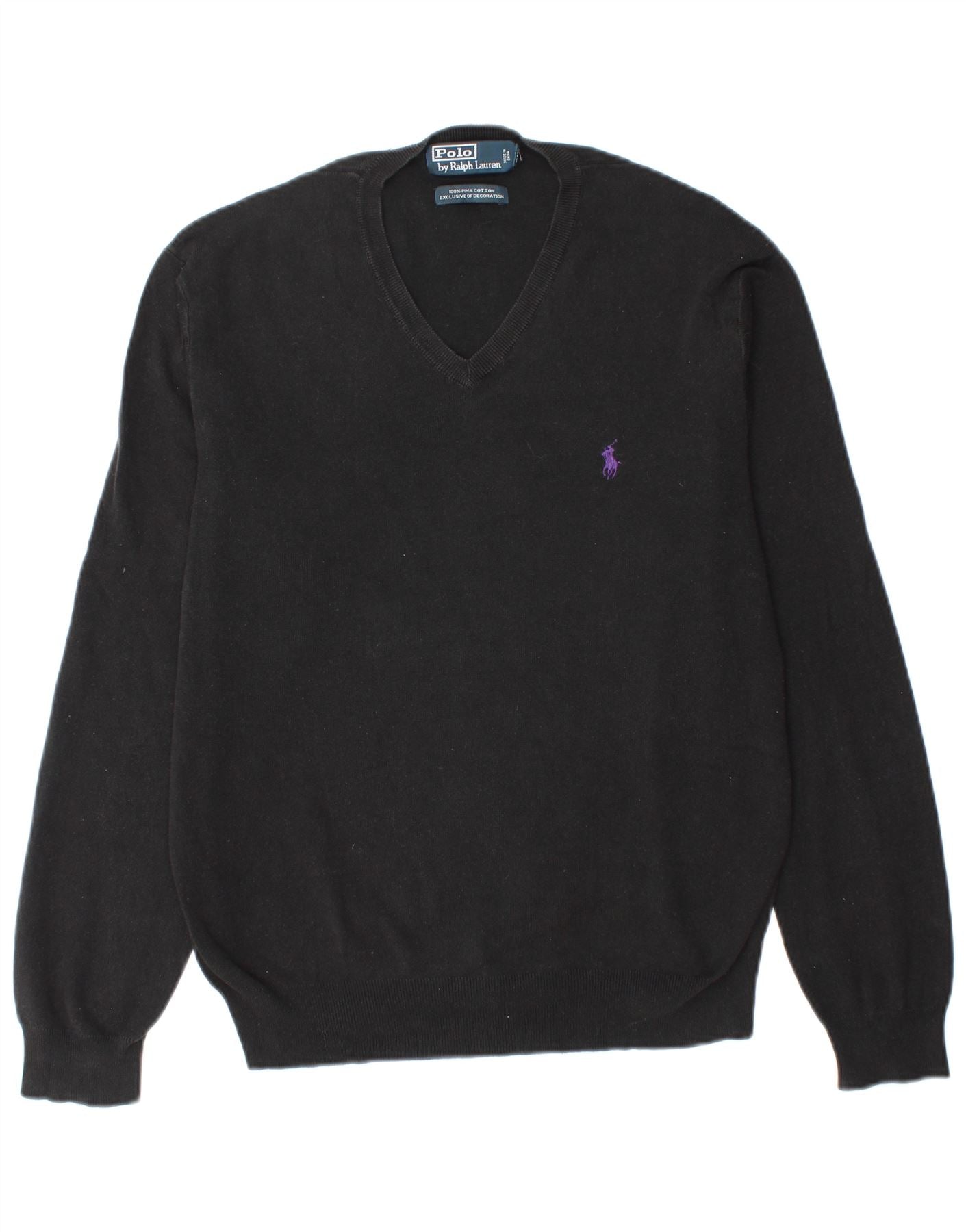 Suéter masculino POLO RALPH LAUREN com decote em V médio algodão preto
