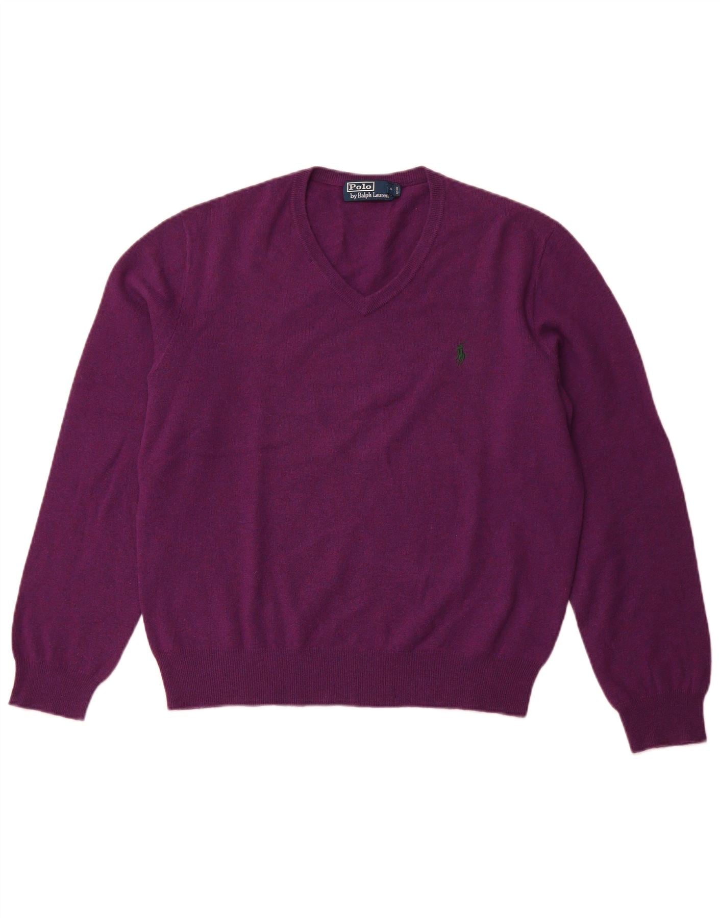 Suéter masculino POLO RALPH LAUREN com decote em V, lã merino roxa média