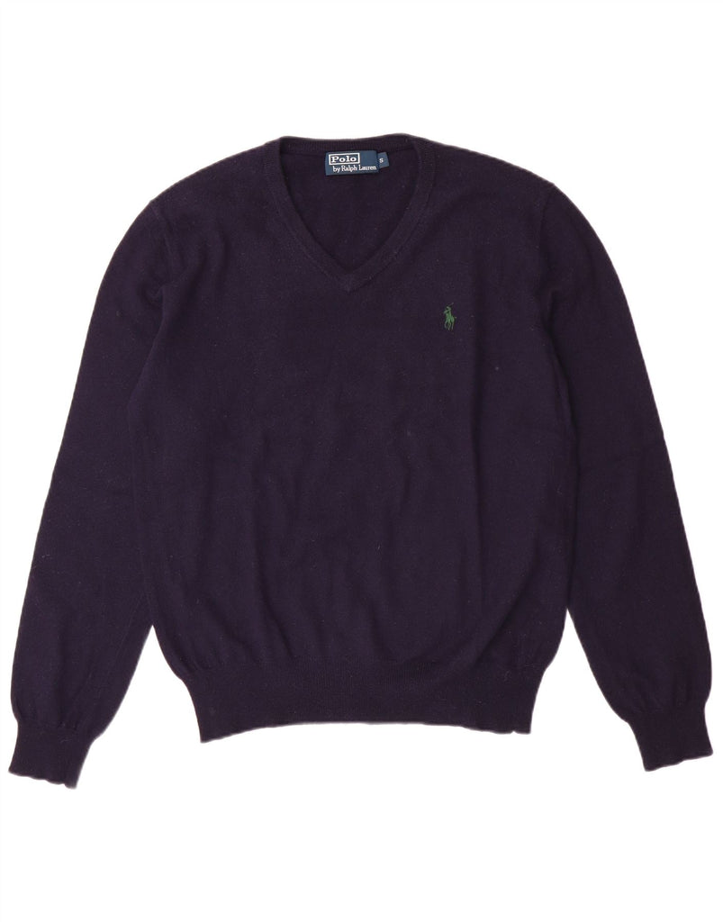 Suéter masculino POLO RALPH LAUREN com decote em V pequeno azul marinho lã merino