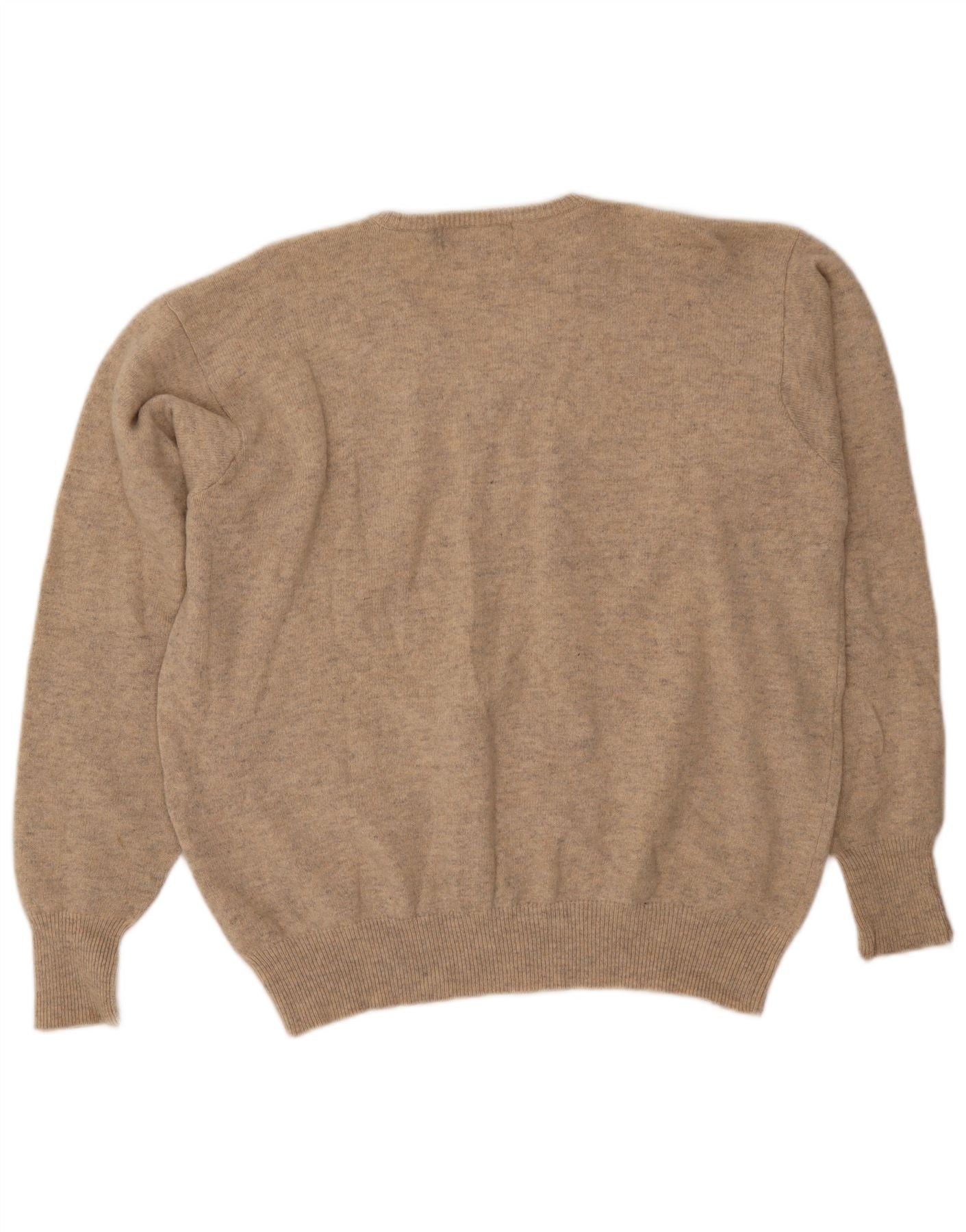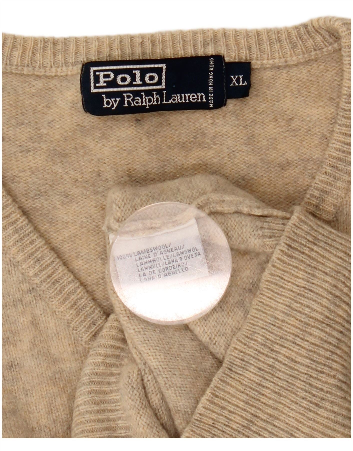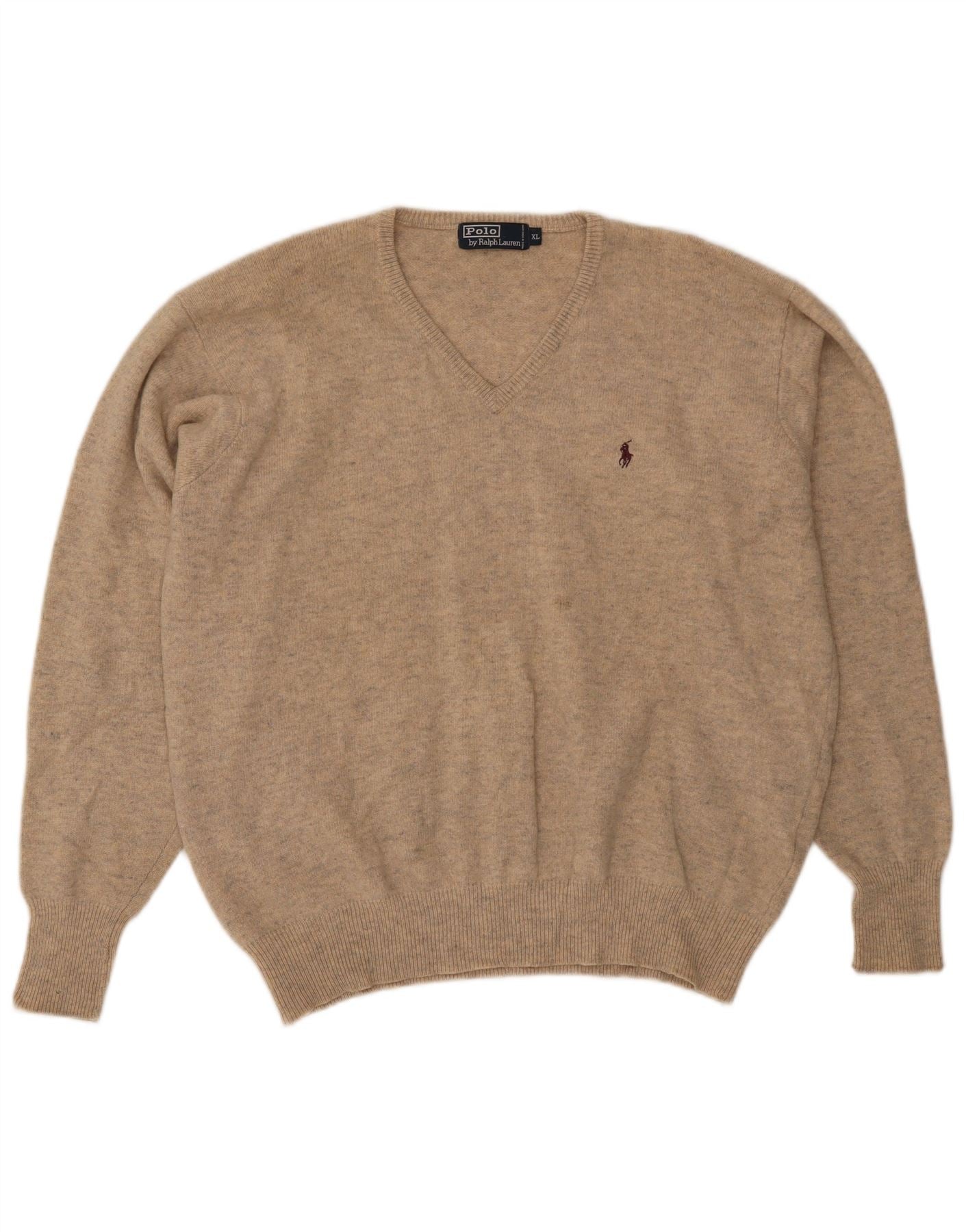 POLO RALPH LAUREN Mens V-Neck Jumper Sweater XL Beige Flecked Lambswool
