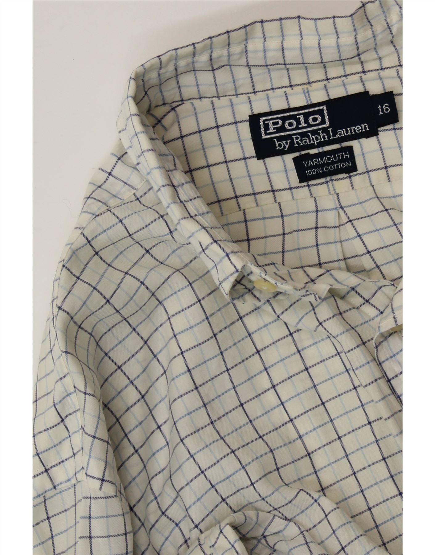 POLO RALPH LAUREN Camisa masculina Yarmouth tamanho 16 grande algodão xadrez branco