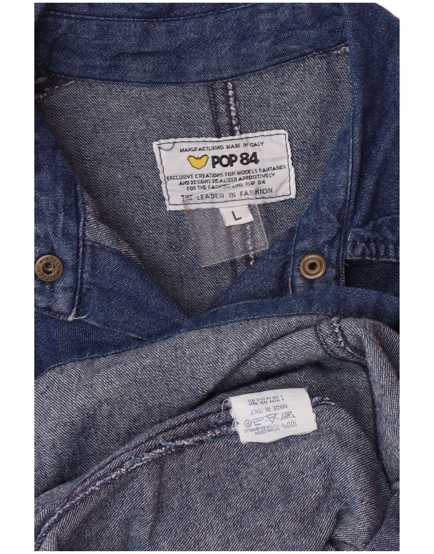 Vestido camisa jeans militar feminino POP 84 Reino Unido 16 grande algodão azul