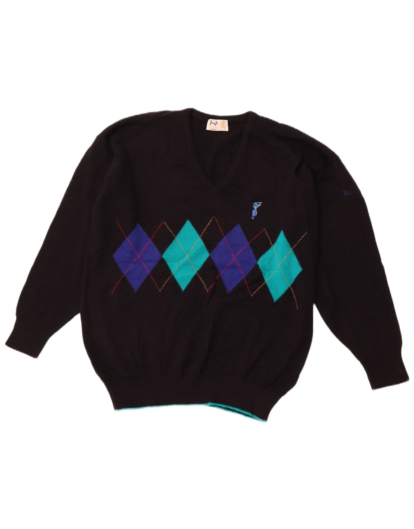 Suéter masculino PRINGLE com decote em V XL preto Argyle/acrílico diamante