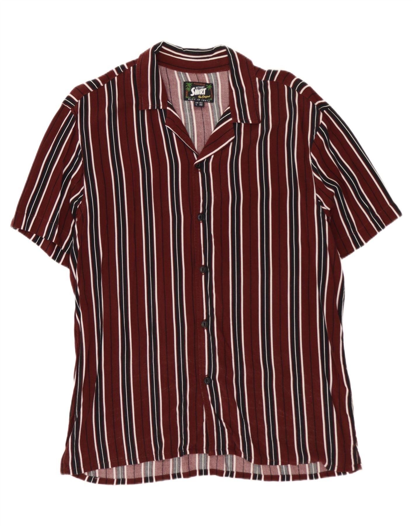 Camisa masculina de manga curta PULL & BEAR grande viscose listrada cor de vinho
