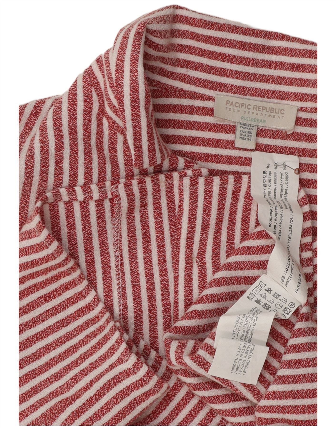 Blusa feminina de manga curta PULL & BEAR Reino Unido 6 XS listrado vermelho