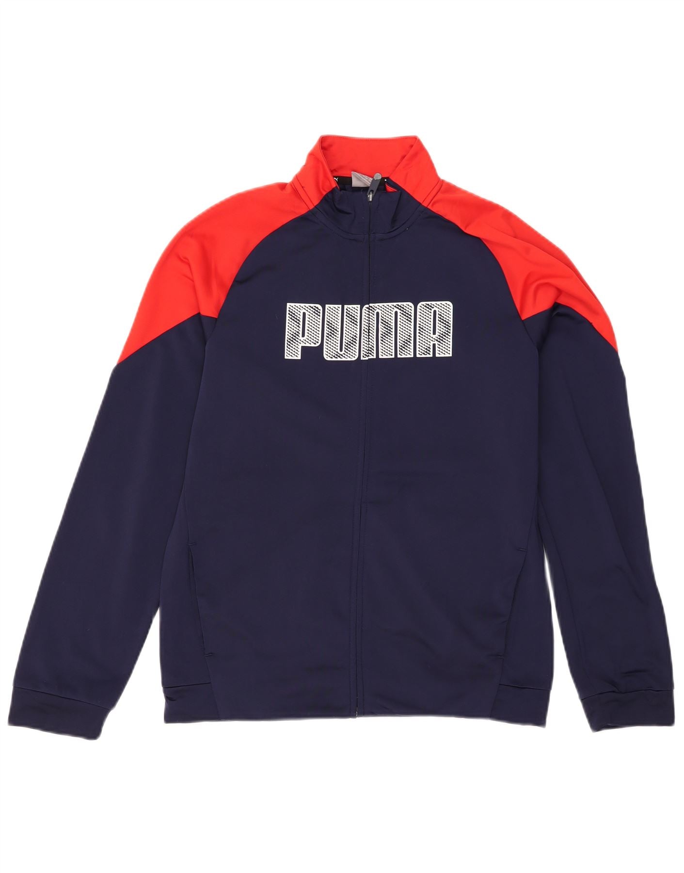 PUMA Boys Graphic Tracksuit Top Jacket 15-16 Years Navy Blue Colourblock