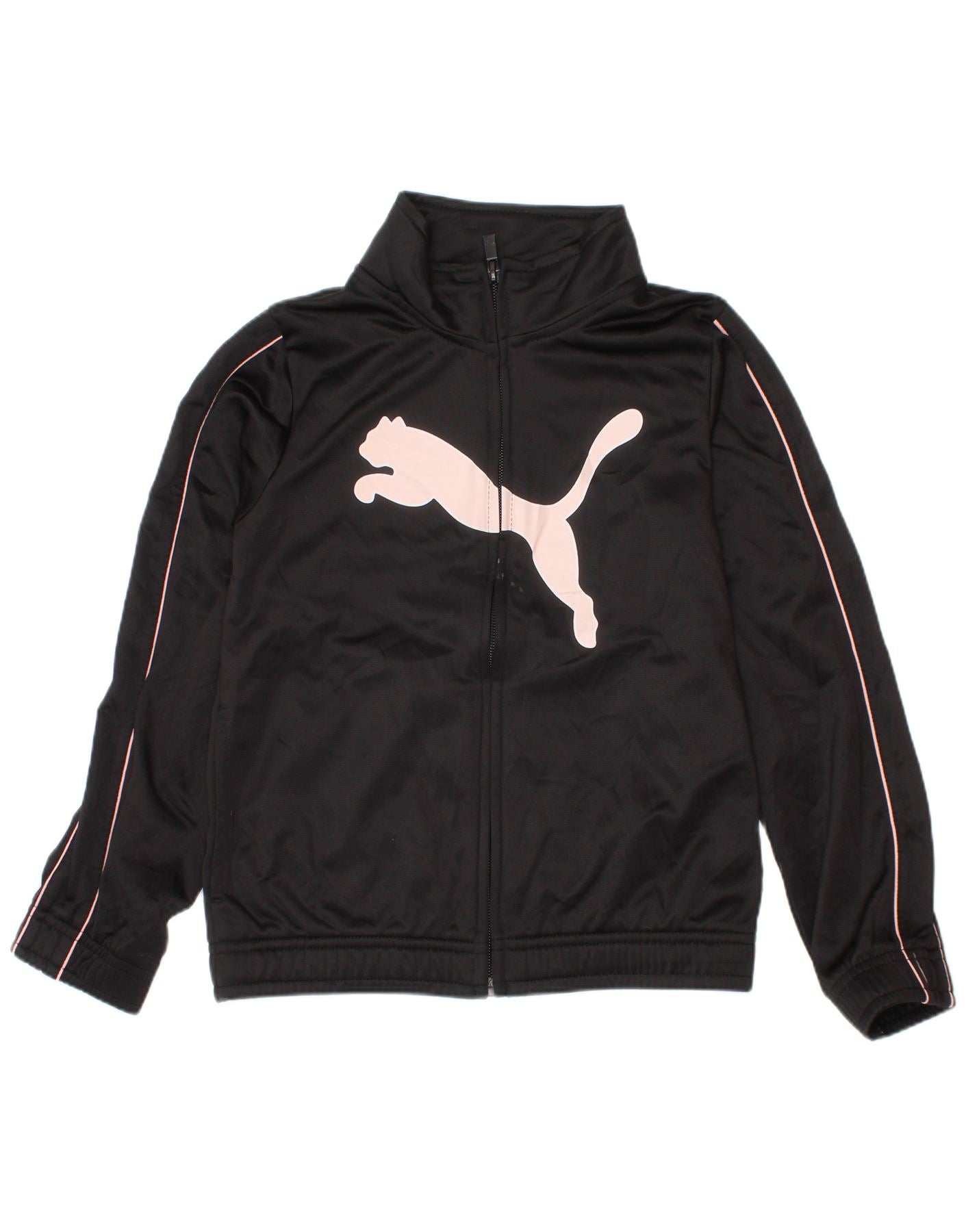- Descrição da IA: Esta jaqueta de treino feminina da Puma é confeccionada em tecido jersey preto liso. Possui gola alta e fecho de correr completo para facilitar o uso. As mangas compridas terminam em punhos confortáveis. Um logotipo gráfico proeminente em uma cor contrastante adorna a frente. Detalhes sutis de listras percorrem as mangas. O ajuste regular garante conforto e liberdade de movimento para uso ativo.