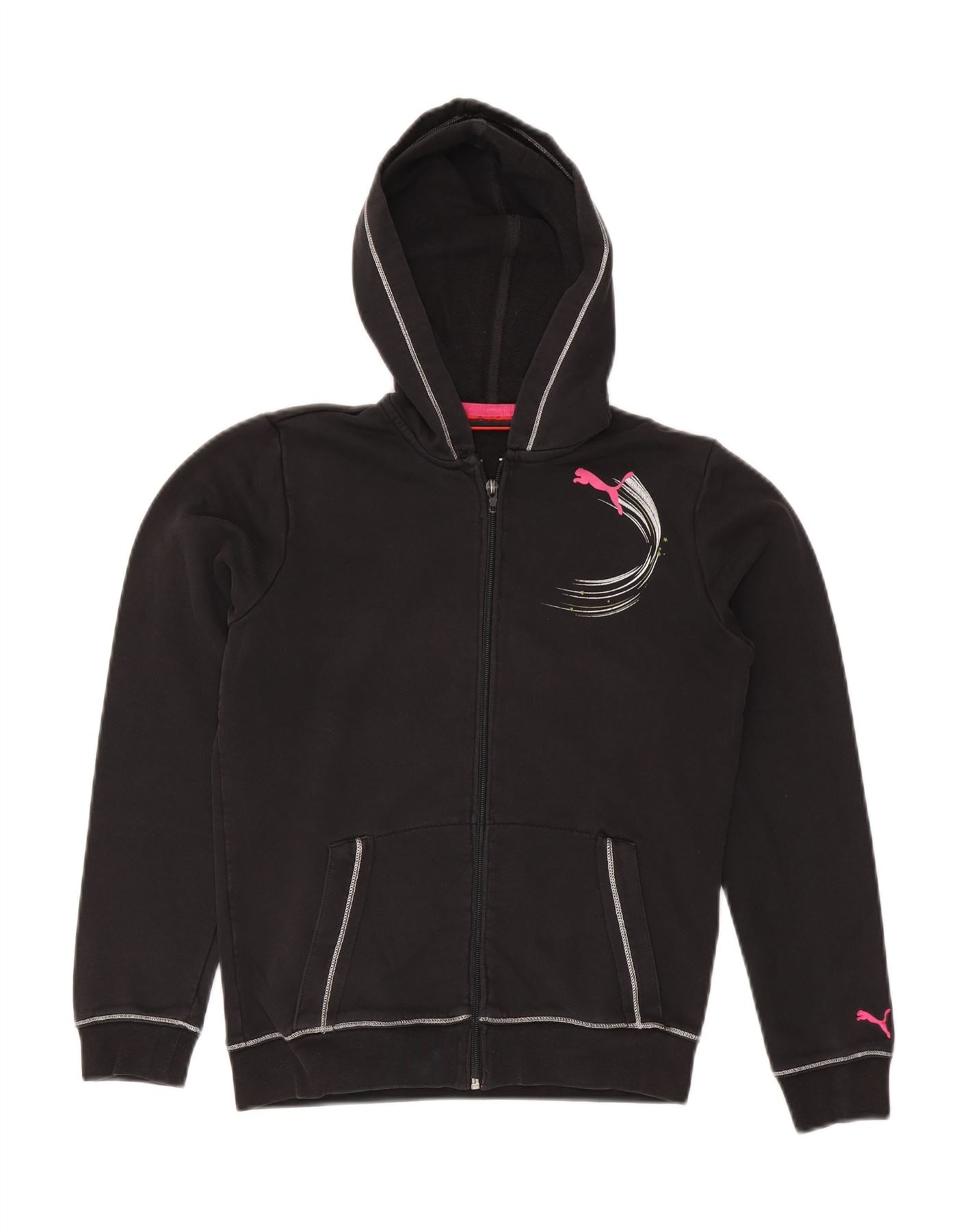 Suéter PUMA feminino com capuz e zíper gráfico 13-14 anos algodão preto