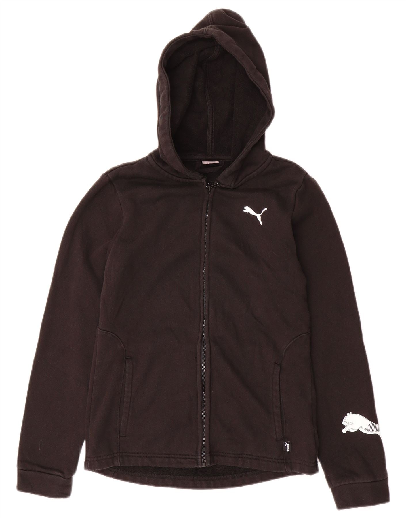Suéter PUMA feminino com capuz e zíper gráfico 13-14 anos algodão preto