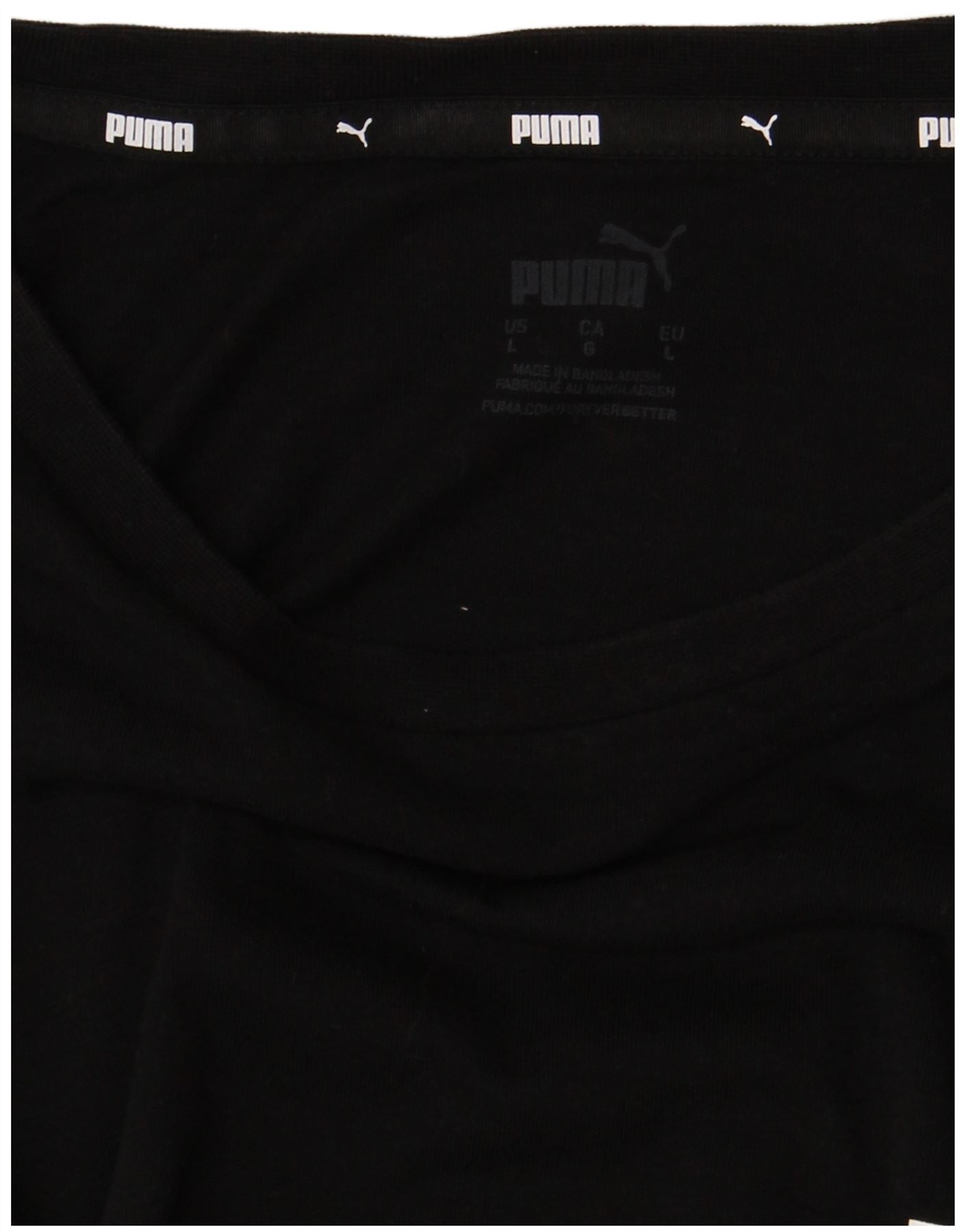 - Descrição da IA: Esta camiseta masculina da Puma é confeccionada em tecido jersey preto macio. Oferece uma sensação confortável e leve para uso diário. O clássico decote redondo e as mangas curtas proporcionam uma silhueta atemporal. Um logotipo proeminente da Puma está impresso no peito. As mangas apresentam fita distinta da marca Puma, adicionando um detalhe elegante. Seu ajuste regular garante facilidade de movimento e um visual descontraído.