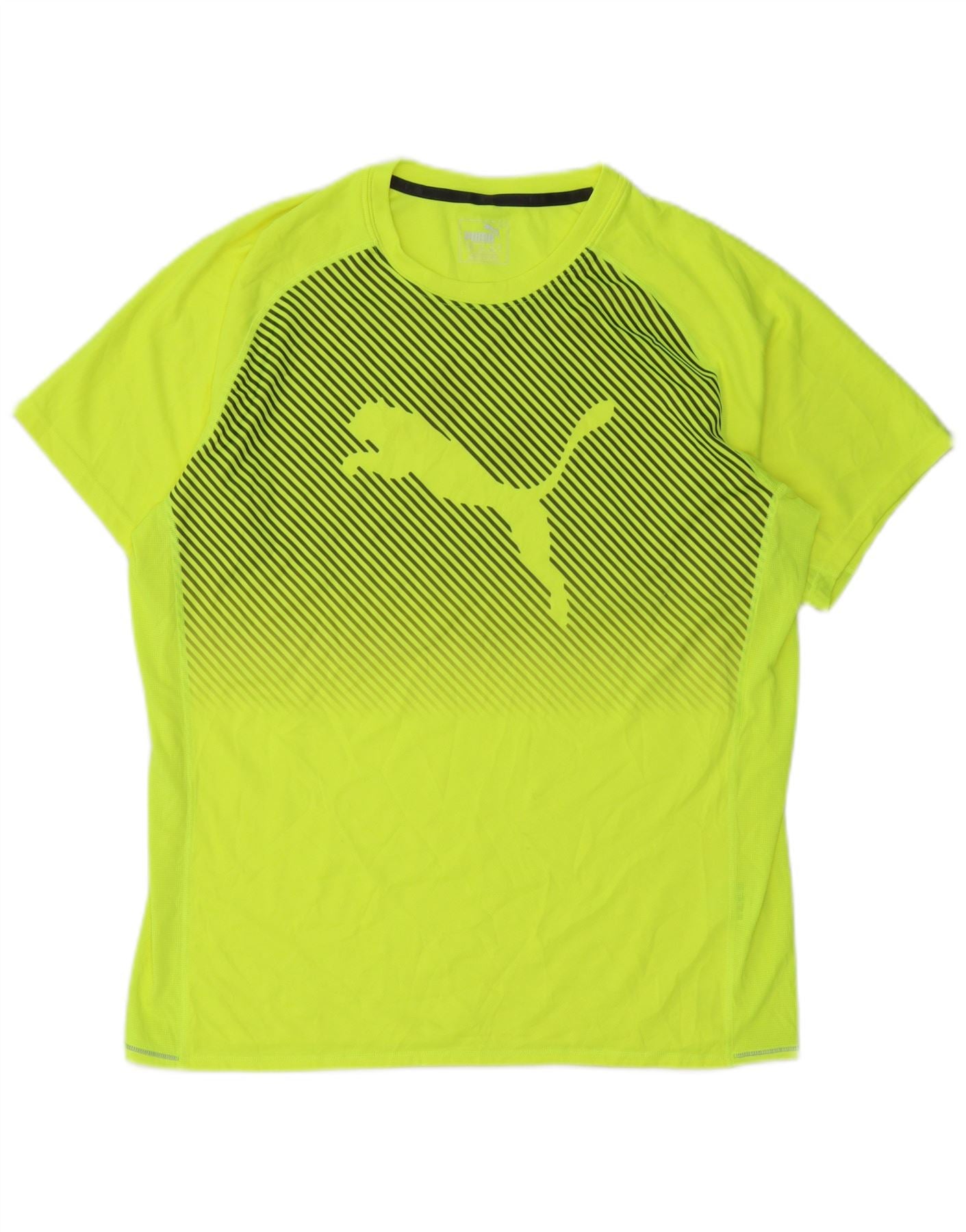 Camiseta masculina PUMA com estampa gráfica grande poliéster listrado amarelo
