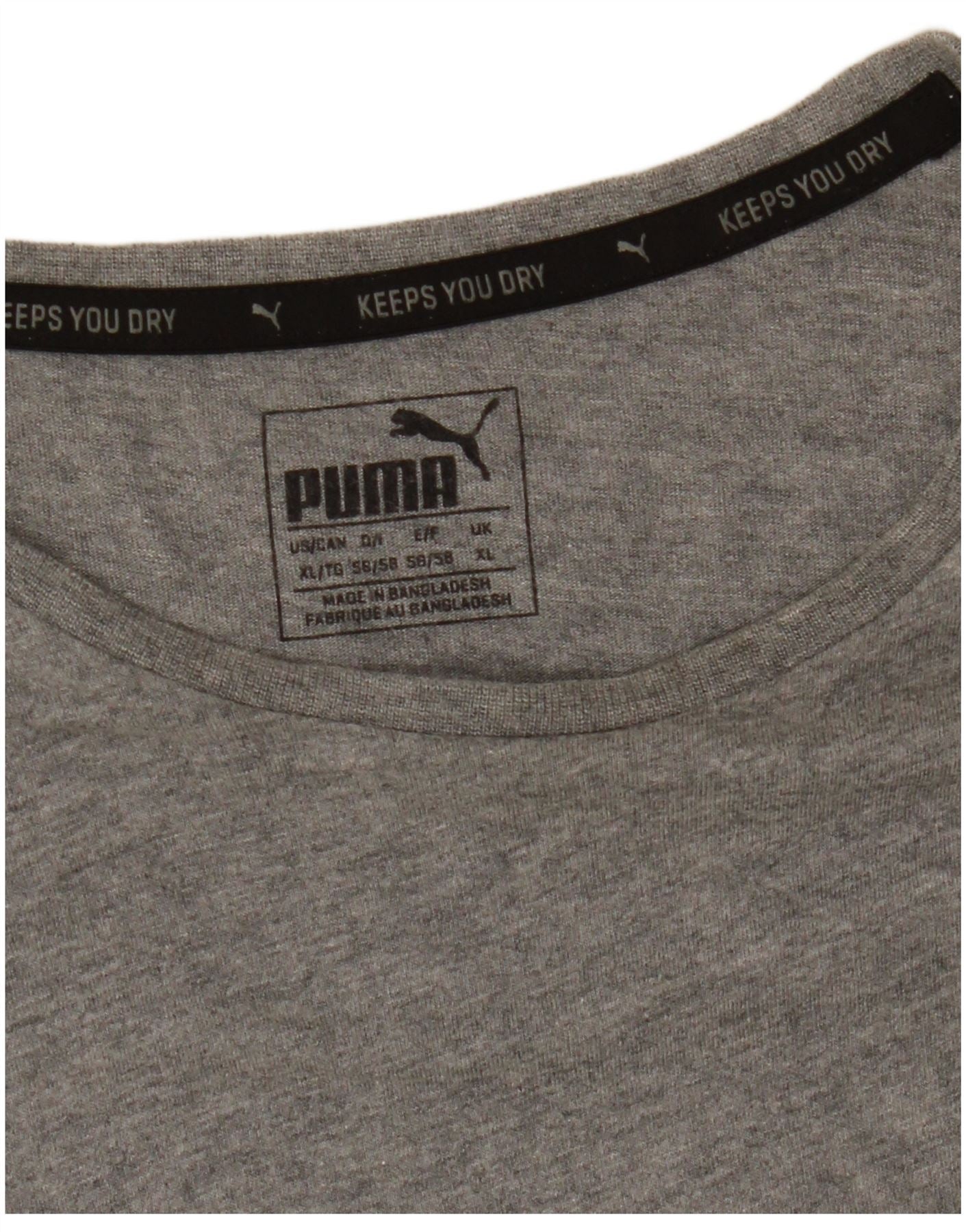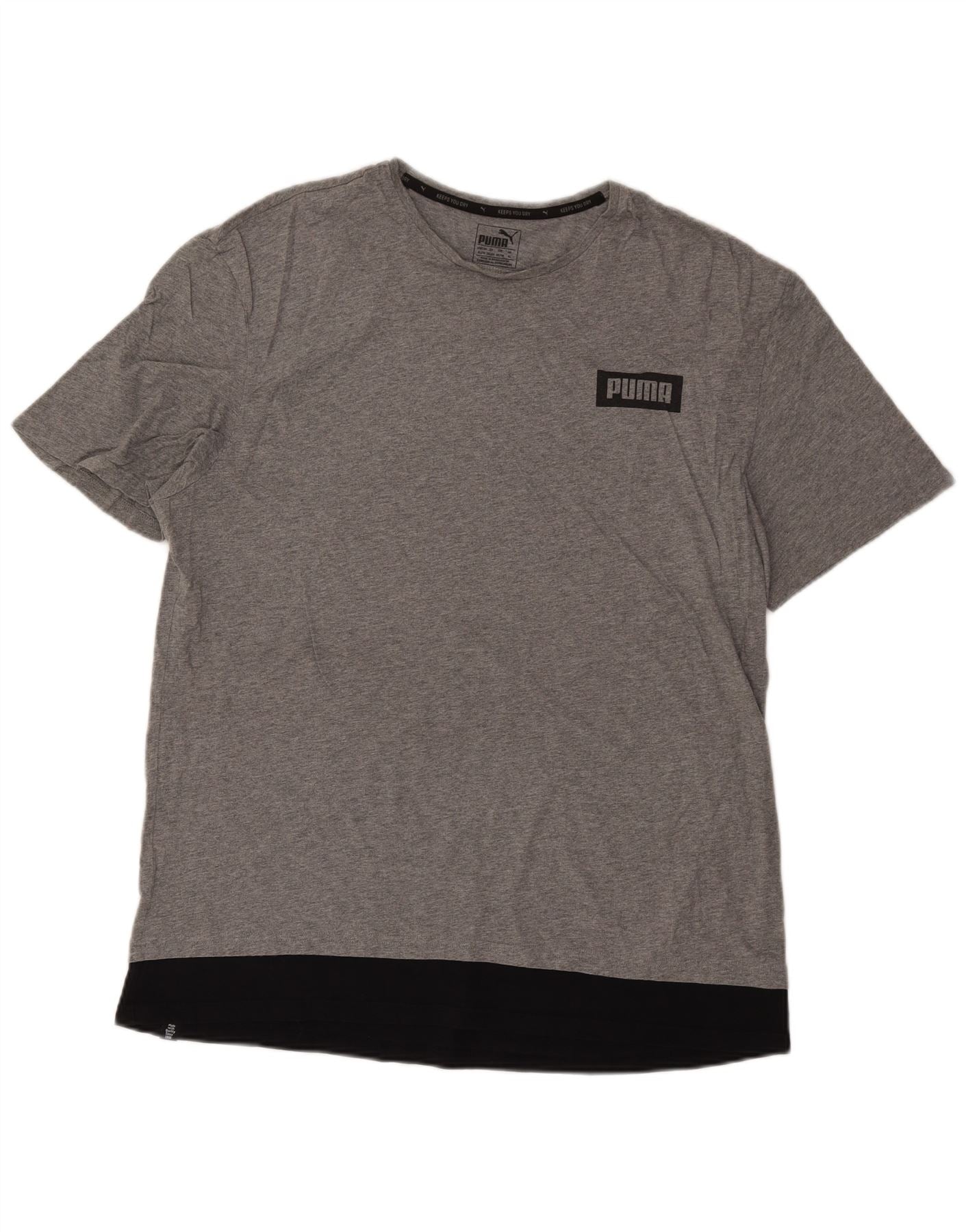 - Descrição da IA: Esta camiseta masculina com estampa da Puma é confeccionada em tecido jersey cinza macio. Possui decote redondo clássico e mangas curtas confortáveis. O ajuste regular garante facilidade de movimento. Um painel preto distinto acentua a bainha. O logotipo da Puma é exibido com destaque na frente e nas costas, adicionando um detalhe esportivo. Este top respirável e leve oferece excelente conforto.