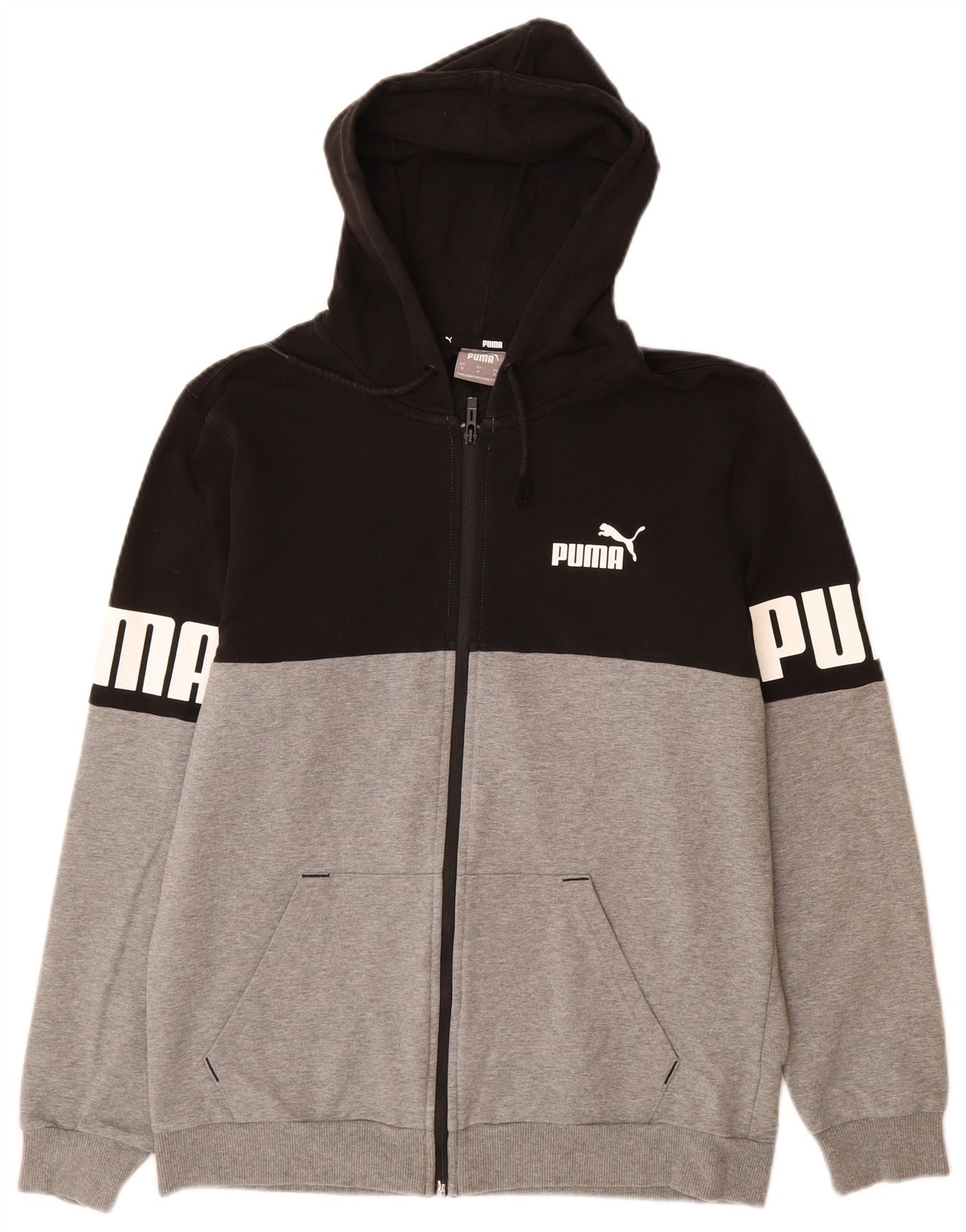 Suéter masculino PUMA com capuz e zíper gráfico médio preto algodão colorido