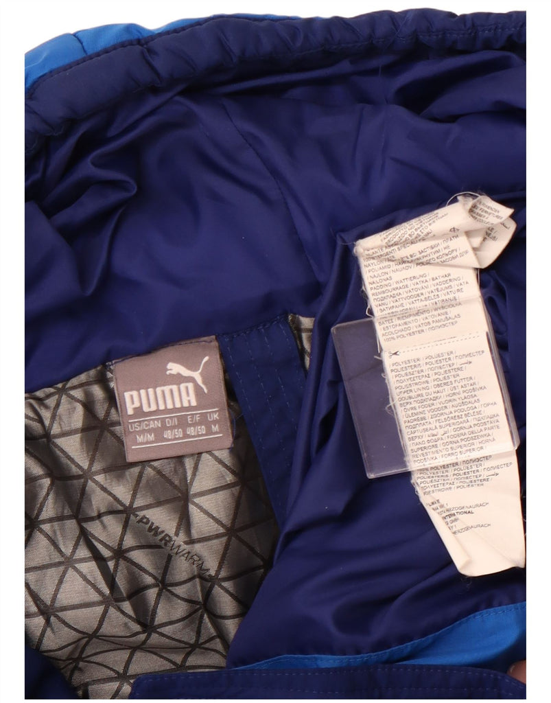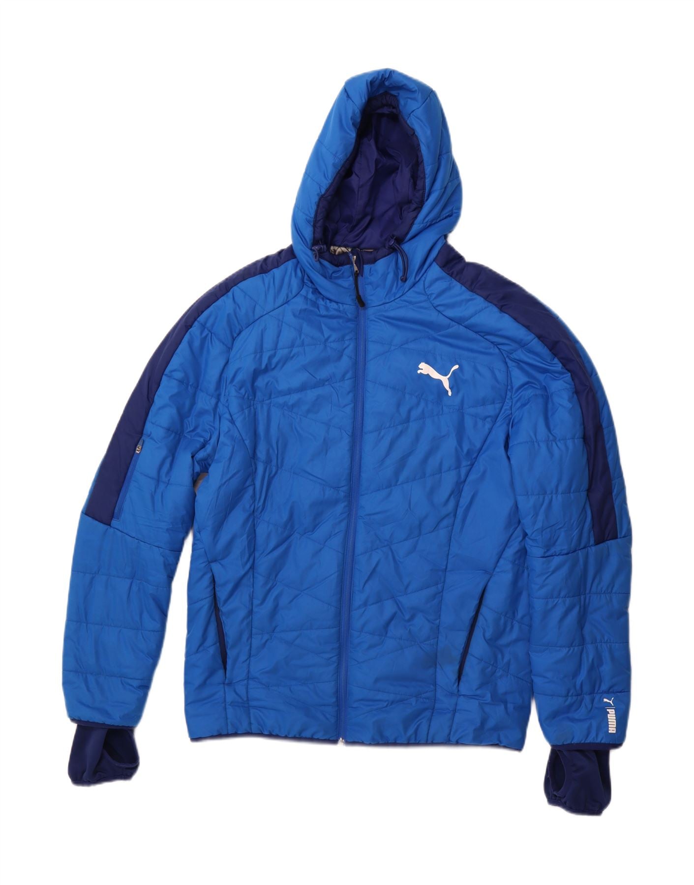 Jaqueta acolchoada com capuz masculina PUMA UK 38 poliéster colorblock azul médio