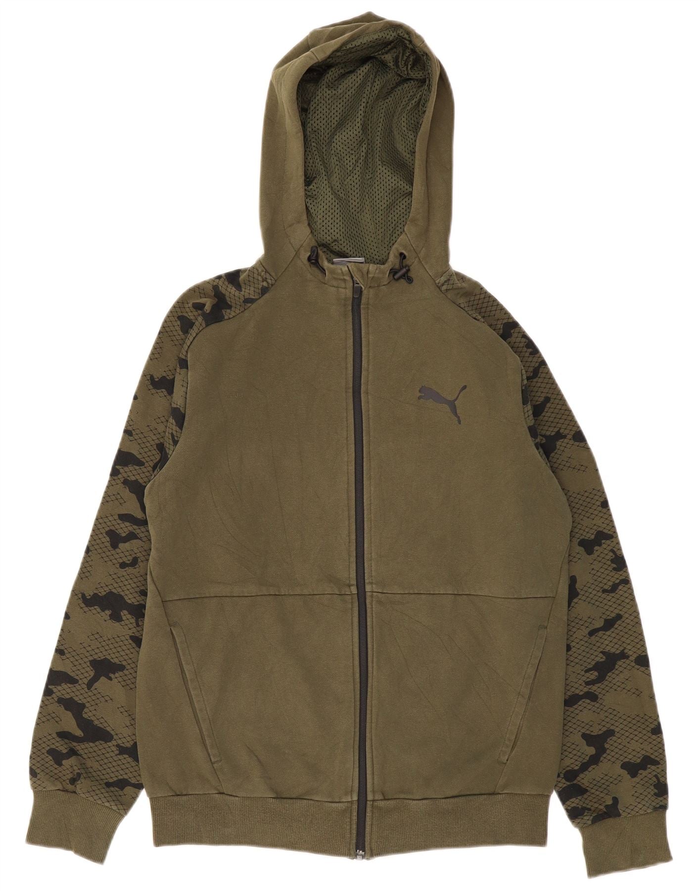 Suéter masculino PUMA com capuz e zíper pequeno camuflado cáqui