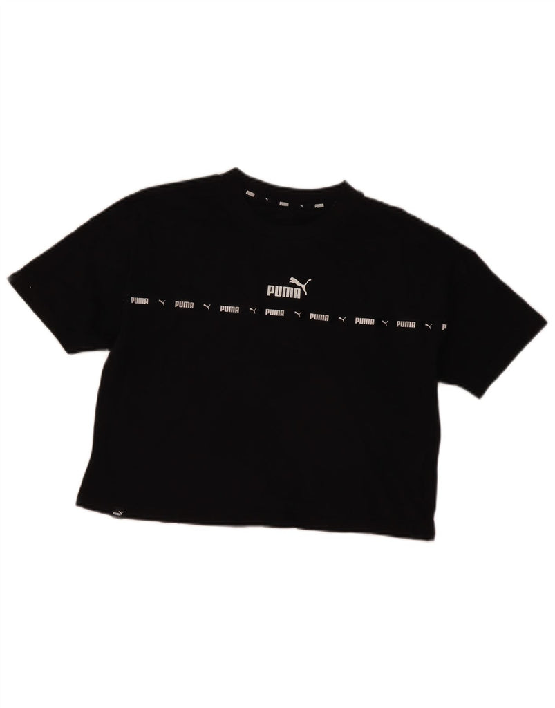 Camiseta feminina PUMA cropped oversized gráfica Reino Unido 10 pequeno algodão preto