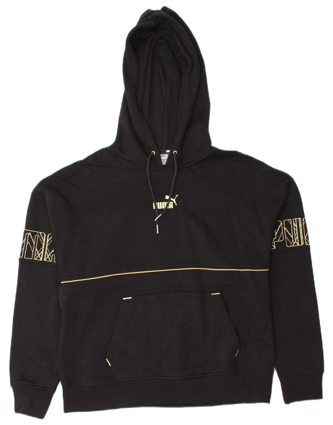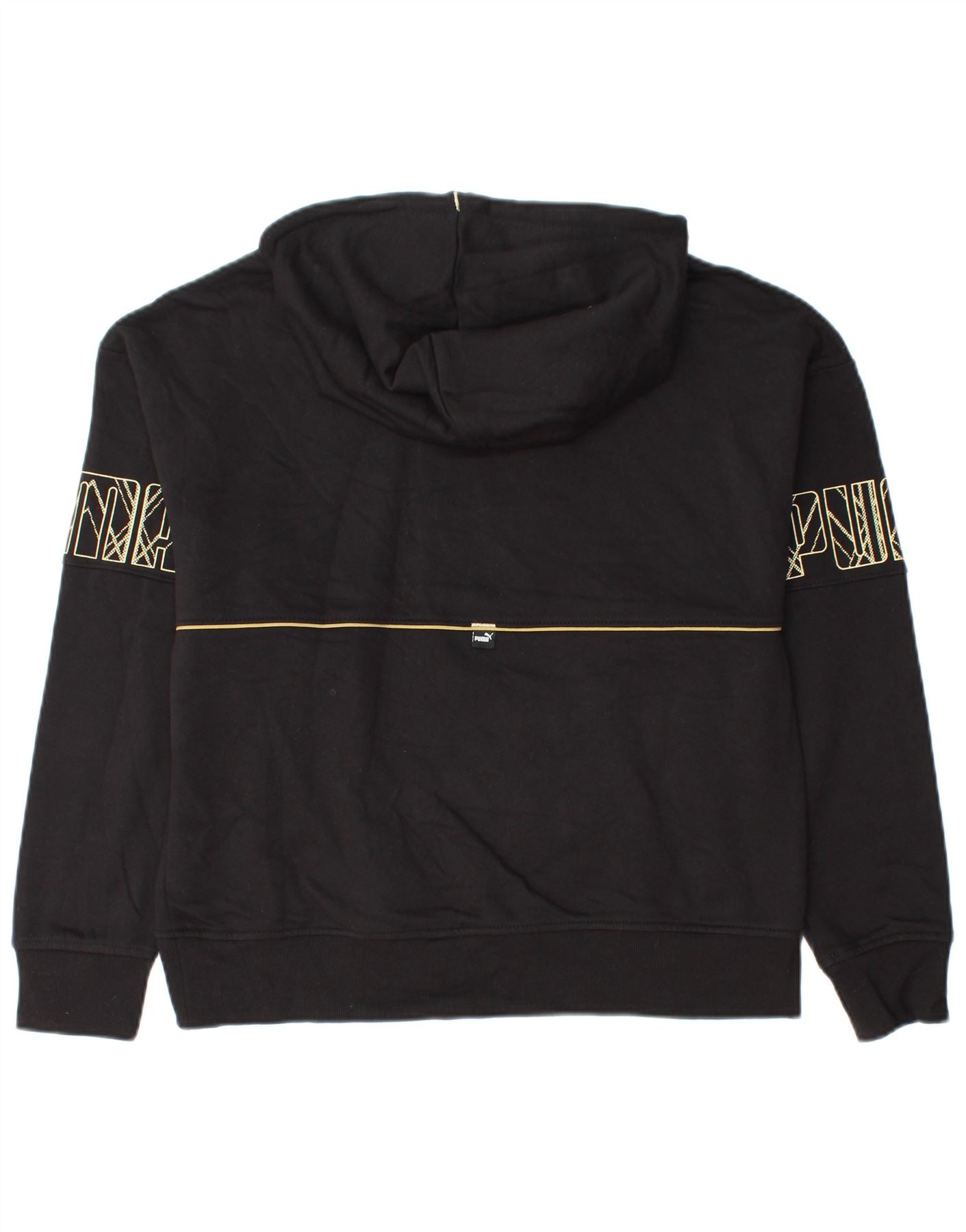 PUMA feminino gráfico moletom com capuz UK 14 médio algodão preto