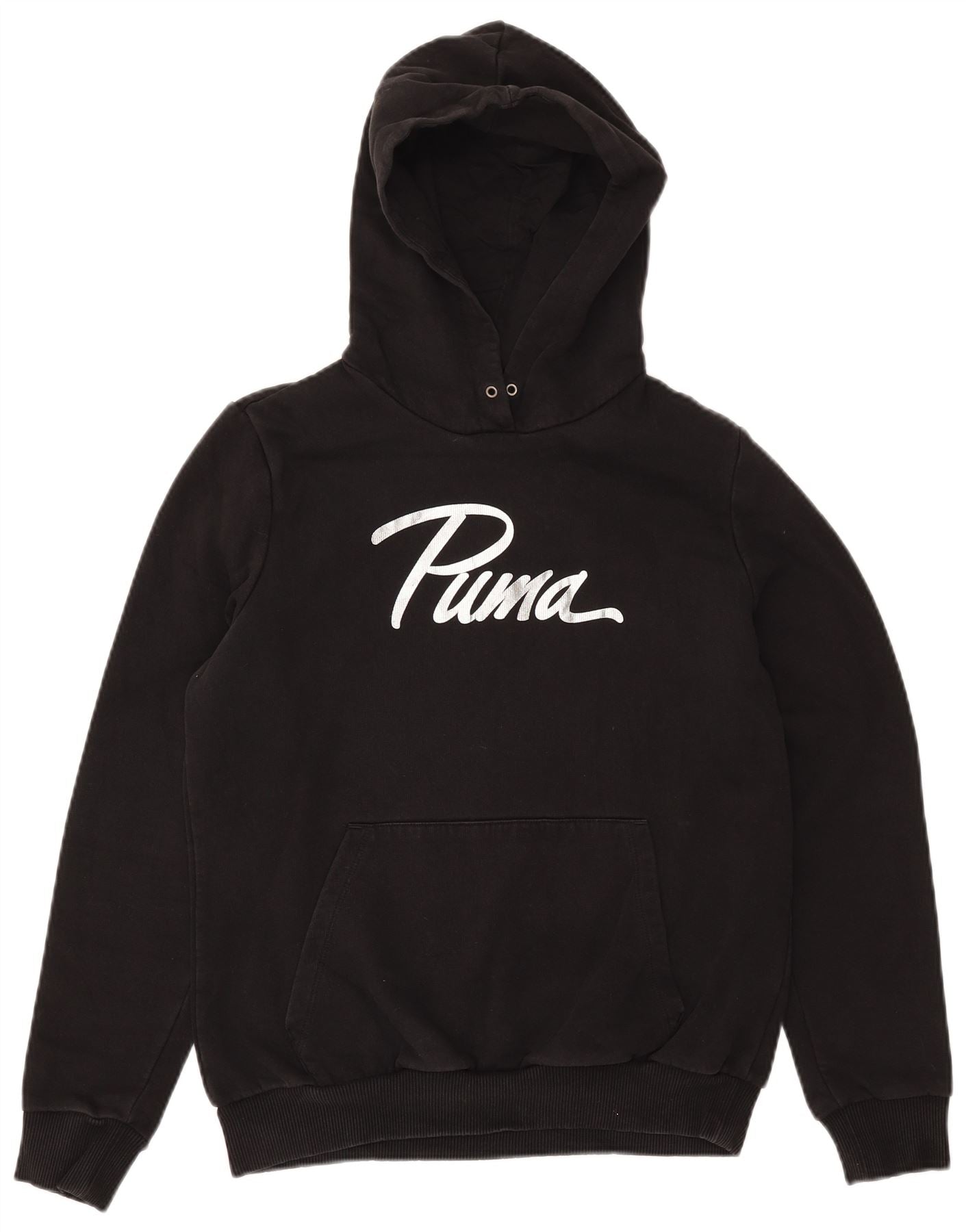 PUMA feminino gráfico moletom com capuz UK 14 médio algodão preto