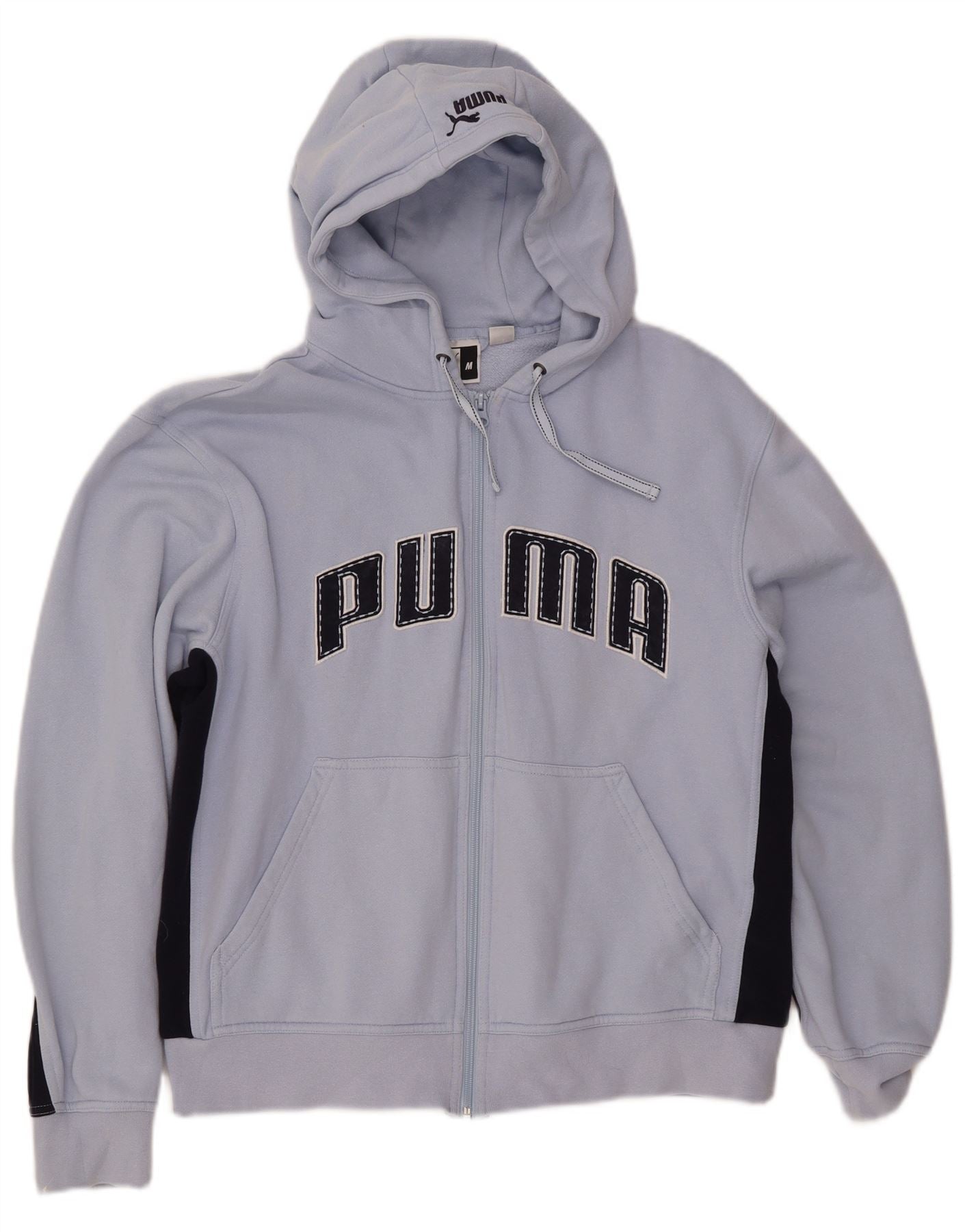 PUMA feminino gráfico moletom com capuz UK 14 médio azul colorblock algodão