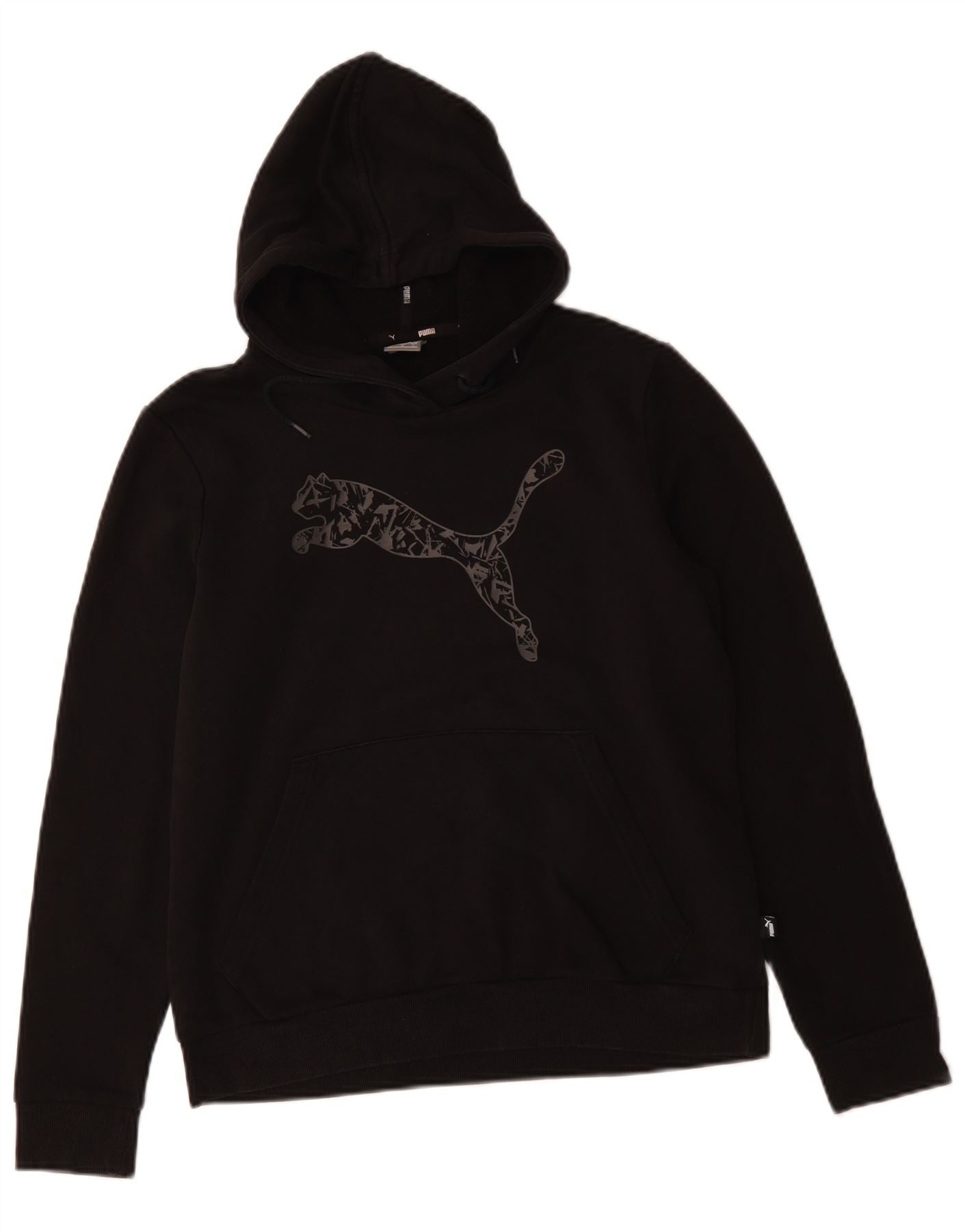 PUMA feminino gráfico moletom com capuz UK 16 grande algodão preto